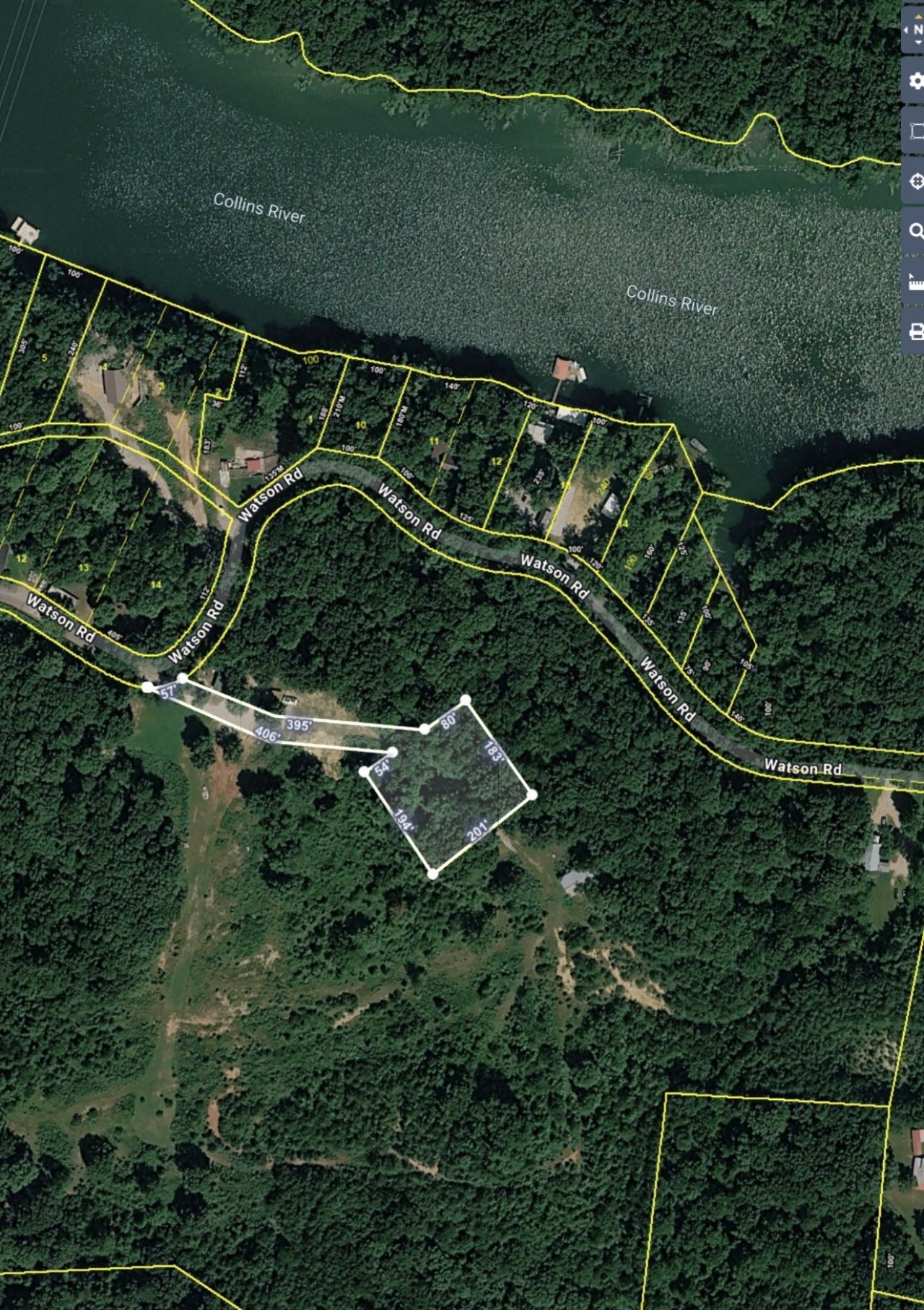 Property is unrestricted, has an easement off of Watson Rd, recent soil test done and is ready for a new home and owner. View of Collins River in the winter.