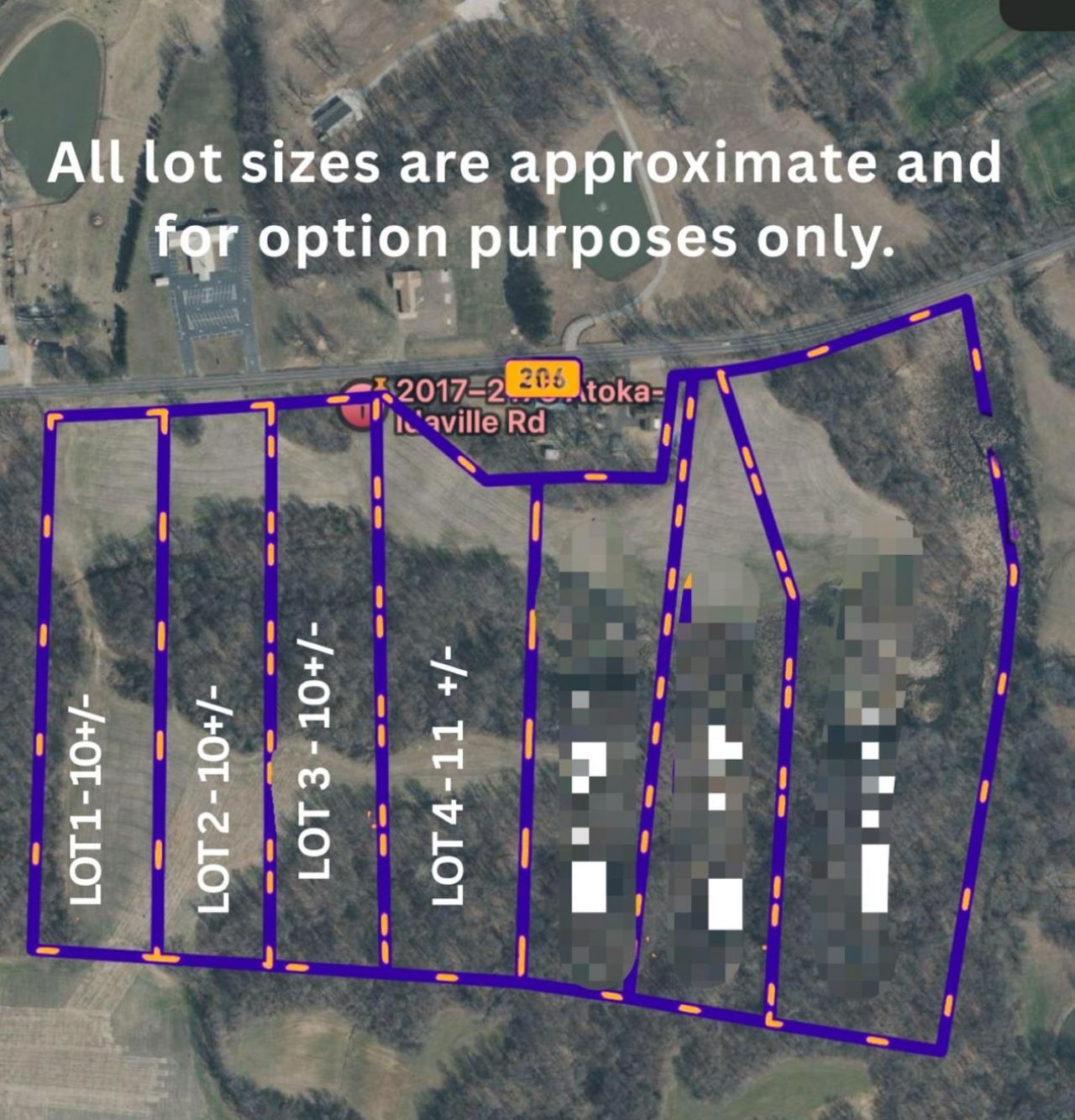 Rare Land Opportunity in Prime Atoka Development Area! No restrictions ? located just outside the Atoka city limits in Tipton County. These are prime, hard-to-find lots in one of the area's most desirable locations. Enjoy walking distance to top-rated schools, shopping, and recreation, plus low county taxes and unbeatable city access. This area is primed for future growth, making it an exceptional investment opportunity. The pricing is unmatched! This listing is for Lot concept 1 of 4 ? options available ? select the one that best fits your needs. CONCEPT ONLY. Lot configurations are approximate and provided as potential options. Buyers are responsible for all due diligence, including surveying, percolation testing, and subdivision. Sold AS-IS. LISTING IS FOR ONE LOT ONLY - BUYER CAN CHOOSE FROM LOT 1 of 4. (10 acres min.)