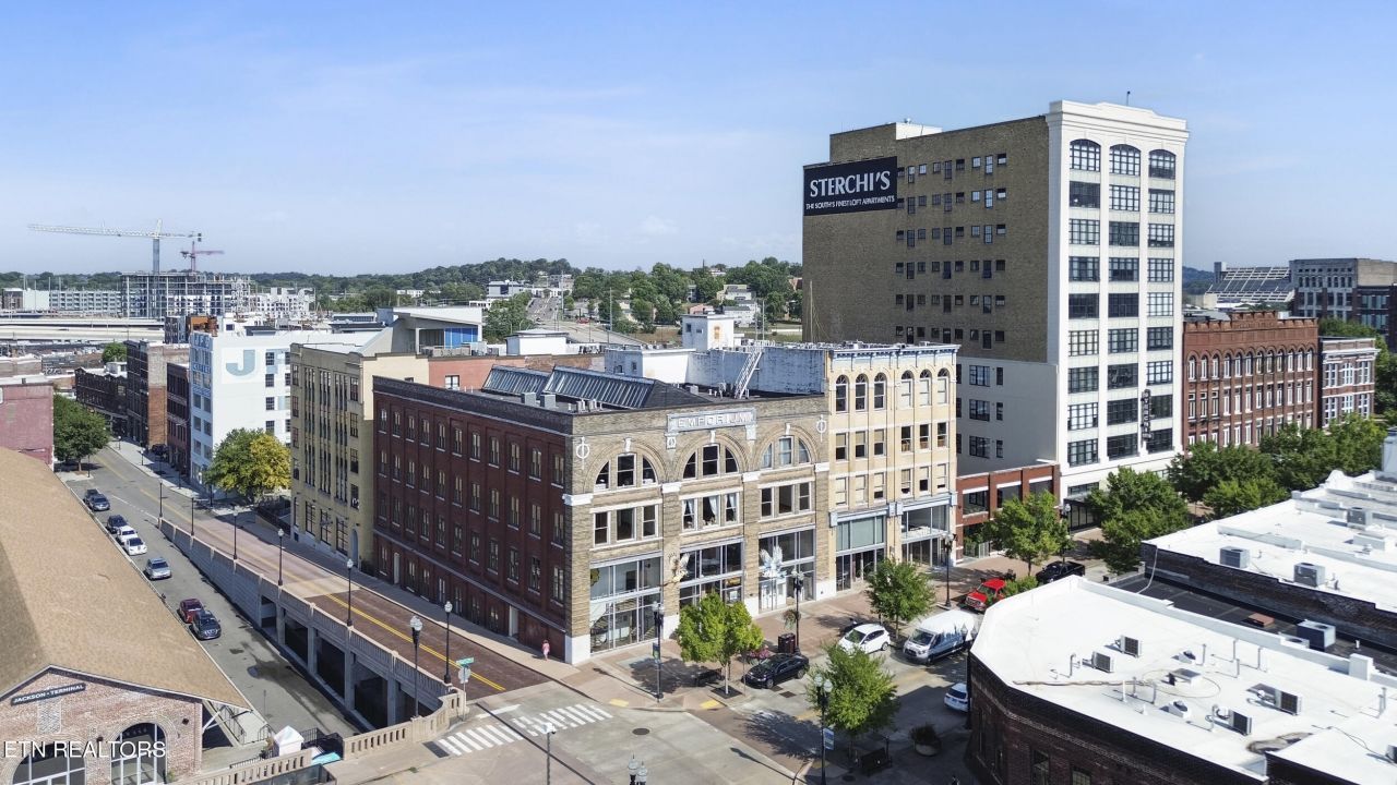 Rare opportunity to own a recently renovated residence in the historic Emporium Building on the iconic 100 Block of Gay Street. This 2-bedroom, 2-bath unit blends character with modern updates, featuring high ceilings, oversized windows, and a view overlooking Gay Street. Originally constructed in the 1890s and restored in 2005, the Emporium Building is ideally located in the heart of Knoxville's vibrant Arts District, just steps from Market Square, the Old City, and Knoxville Smokies Stadium. Residents enjoy access to a spacious shared courtyard, and the building is pet-friendly.With approved short-term rental capabilities, this property offers exceptional flexibility as a primary residence, second home, or income-producing investment. Taxes are based on estimated amounts.