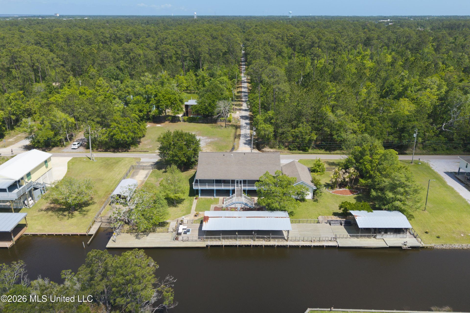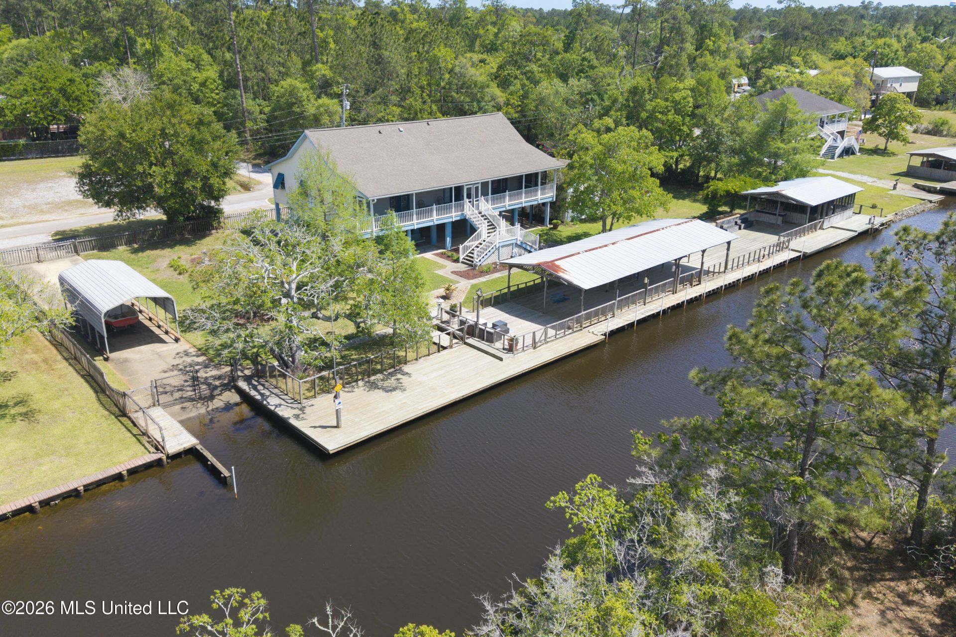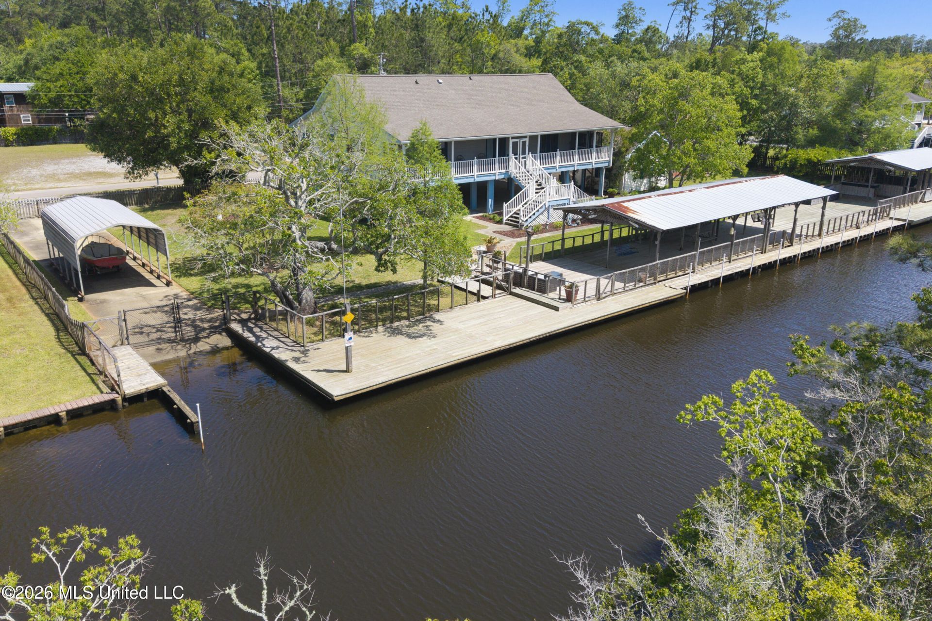 If exceptional outdoor living and true waterfront entertaining are what you have been searching for, this property delivers on every level. Situated on four lots with over 200 feet of waterfront, this private retreat is designed for those who love gathering, relaxing, and making the most of life on the water.The outdoor spaces are the true showstopper. An expansive deck stretches across the back of the home and features two separate covered areas, creating multiple spaces to entertain and unwind. One section is thoughtfully designed as a fully equipped outdoor kitchen, while another offers a dedicated bar area perfect for hosting friends, game days, a fish cleaning station, and weekend cookouts. Just steps away, a comfortable lounging area complete with outdoor swings invites you to slow down, enjoy the coastal breeze, and take in the peaceful waterfront setting. Whether you are hosting large celebrations or quiet evenings at home, this outdoor setup was built to be enjoyed year-round.For boating enthusiasts, the property is equally impressive. A private concrete boat launch provides convenience and easy access to the water, while the covered boat parking offers dependable protection for your vessel. With deep-water access, you can quickly reach the Jordan River, Bay St. Louis, nearby marinas, restaurants, and the open waters of the Gulf, making every day on the water simple and accessible.Inside, the home offers approximately 2,300 square feet with 3 bedrooms and 3 bathrooms, featuring an inviting layout filled with natural light and views of the surrounding landscape.The spacious primary suite serves as a relaxing retreat, highlighted by a large soaking tub, a beautiful walk-in shower, and your own personal sauna, creating a spa-like experience right at home.Additional features include a huge two-car garage that doubles as a workshop area, providing ample space for projects, storage, and recreational equipment. The beautifully maintained grounds, mature landscaping, and fully fenced setting complete the picture of a property that balances comfort, functionality, and an exceptional outdoor lifestyle.This is more than just a home. It is a place to gather, entertain, launch your boat, and truly enjoy waterfront living to the fullest. More land can be available see MLS #