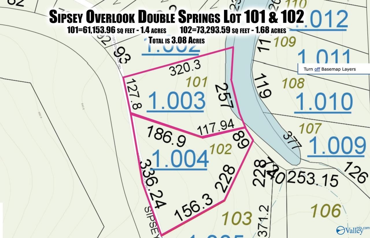 This land located at 101 & 102 Sipsey Overlook Road, Double Springs, AL 35553 is currently listed for sale with an asking price of $99,000. The property has approximately 3.08 Acres. Search Double Springs real estate on www.clcommercialrealestate.com today.