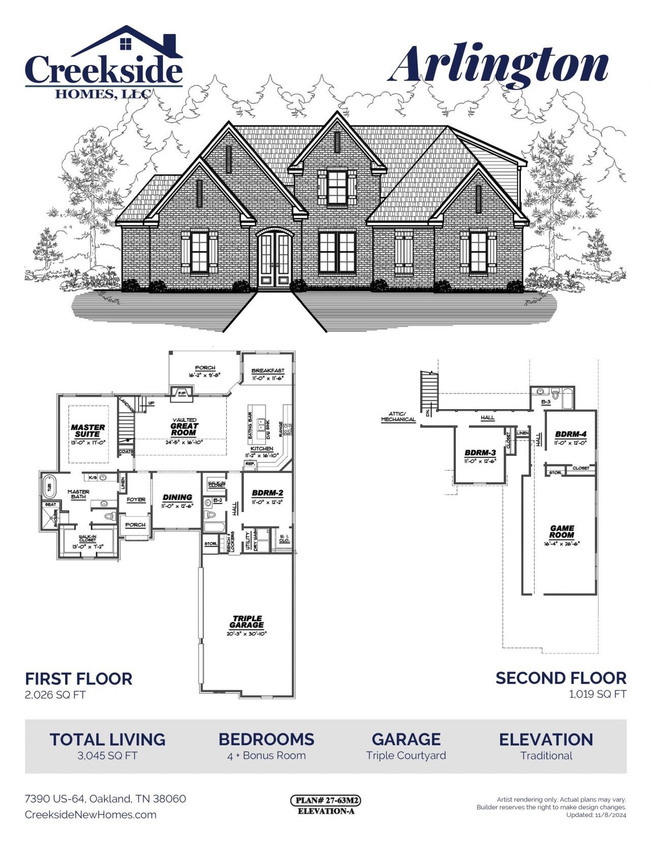 Join the Lion Pride!! Located just down the road from Top-rated Brand New Lakeland Schools!! Our popular "Arlington" Floor Plan features 2 Bedrooms Down & Open Floor Plan w/ Beautiful Iron Rail Balcony overlooking Vaulted Great Room. Gas Cooktop, Double Ovens, Large Island & Under counter Lighting. Huge Pantry! Spacious Bedrooms, Luxury Primary suite w/ Large Walk-in Closet & Separate Vanities. Gas Fireplace w/ Raised Hearth. Generous Crown Molding in Main Living Areas. Two walk-in attics. 3-CAR GARAGE! Beautiful New Community Just minutes from the Brand New Lakeland Schools! Quality built by Creekside Homes, LLC. ***Buyer can still customize some finishes at this time*** Est. completion JUNE 2026. SAMPLE PHOTOS ONLY OF SAME FLOORPLAN
