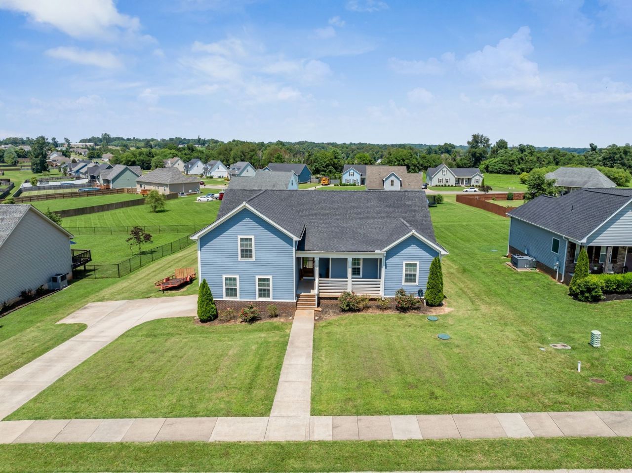 Seller is willing to Pay $10,000 towards buyers closing costs or rate buy down with full price offer. Qualifies for USDA loan. Sycamore Schools. Pleasant View Elementary! Beautiful 3 bedroom 2 bath w/ Bonus on half acre fenced lot. Vaulted ceilings, open floor plan w/ beautiful hardwood and tile floors. Stainless appliances, granite counters, craftsman style trim & custom showers. Primary Suite has extra-large bath with soaking tub, separate shower, double vanities and huge walk-in closet. Huge bonus room that could also be used as a 4th bedroom. Kitchen has eat in area and large breakfast bar as well. Rocking Chair front porch in a country setting yet convenient to shopping and dining options. Only 10 minutes to the interstate for easy commute. 2 car garage. Great walking neighborhood.