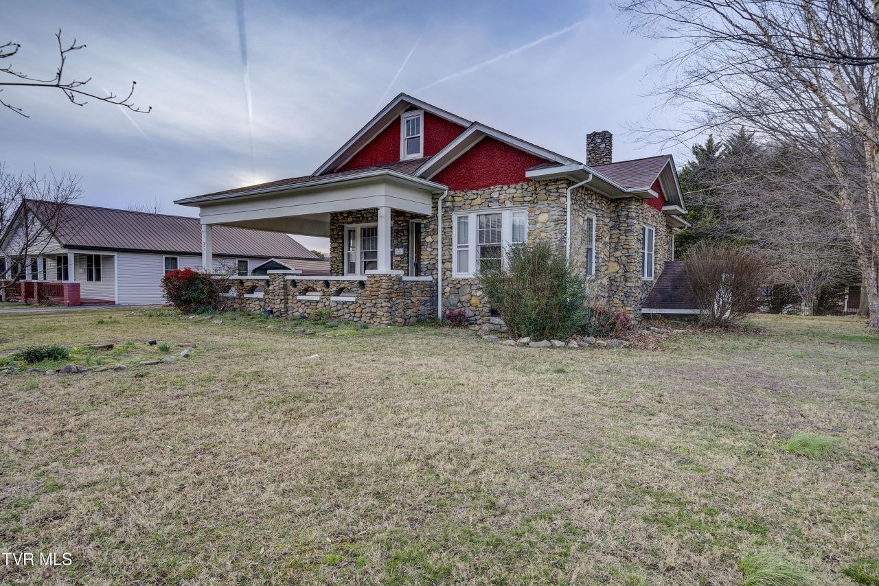 OPEN HOUSE SUNDAY, MARCH 1 2:00- 4:00 Welcome to this charming 1910 stone cottage in the Town of Erwin -- full of character, warmth, and thoughtful updates. Featuring beautiful original hardwood floors and classic trim-work, this home blends historic craftsmanship with everyday comfort. The owners have recently finished the ceilings in the living room, dining room, and kitchen, adding a fresh, clean look while preserving the home's timeless charm. The kitchen has also been newly finished and updated, creating a more modern and functional space for cooking and gathering.The floor plan offers 3 spacious bedrooms, 1 full bathroom, a walk-in pantry just off the kitchen, and a dedicated laundry room. Enjoy outdoor living and mountain views from the covered wrap-around front porch, or relax in the backyard garden area.Situated on a level 0.26± acre lot within Erwin city limits, this property also includes a detached garage/storage building and easy exterior access to the unfinished basement -- ideal for additional storage or potential future use. The outdoor condenser for the central heat & air system was replaced in July 2023, providing peace of mind for the next owner. Fiber-optic internet is connected, making work-from-home or streaming seamless. Natural gas is available in the area.Conveniently located near downtown, schools, parks, and local amenities -- this home offers small-town living with modern convenience.Disclaimer: All information deemed reliable but not guaranteed. Buyer and/or buyer's agent to verify any and all information.