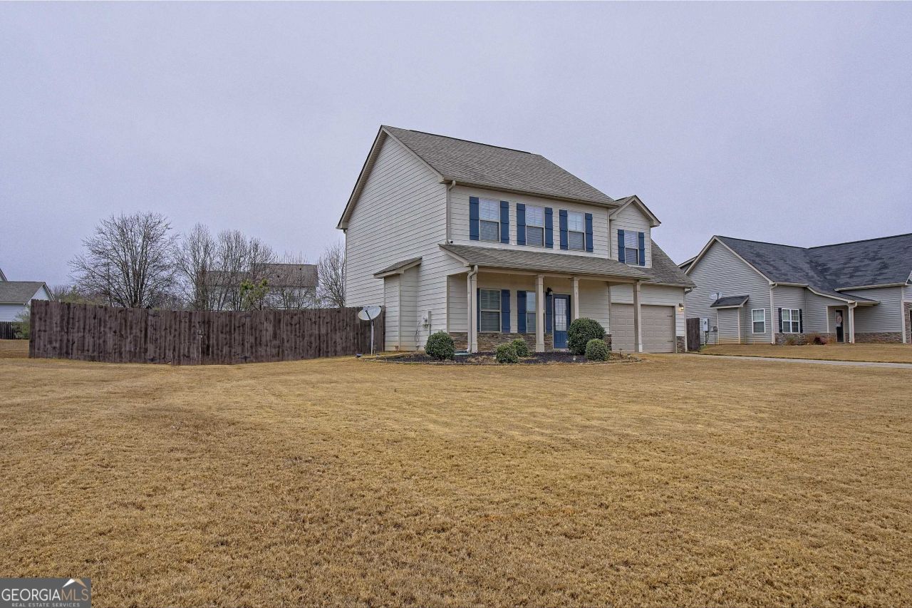 Move in ready and packed with upgrades! This 4-bedroom, 2.5-bath home offers comfort, style, and functionality throughout. Brand new flooring throughout the entire home. The kitchen is equipped with stainless steel Frigidaire appliances, a garbage disposal, and soft close cabinetry throughout the entire home including all upstairs cabinets and drawers. Additional highlights include a convenient upstairs laundry, cordless blinds throughout the home, and a private, fully fenced backyard complete with a fire pit perfect for relaxing or entertaining. A truck gate on the left side of the fence allows easy access to the backyard for added versatility. Best of all NO HOA! Preferred lender: Amanda Moseley- USA Mortgage 404-423-5208