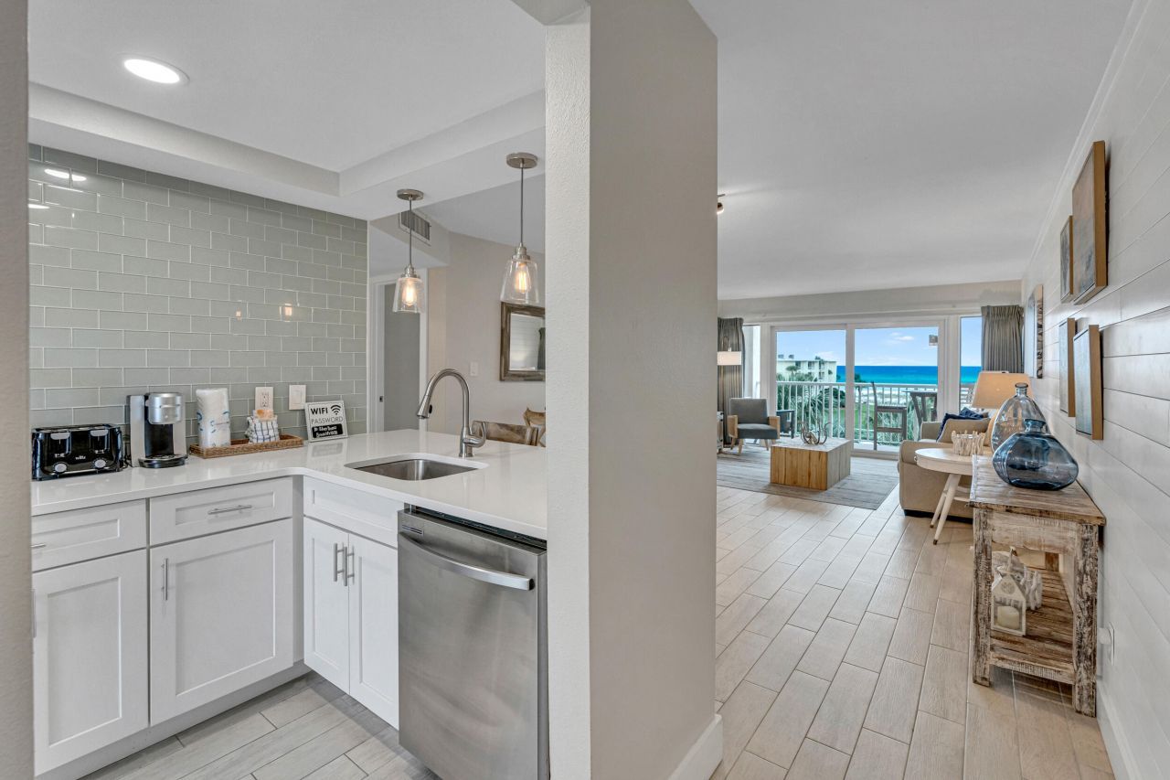 WOW... GULF FRONT PENTHOUSE! 2 bed/2 ba sold fully furnished with lots of attention to details. Total remodel was done 2022 which included EVERYTHING: kitchen with appliances, cabinets, countertops, both bathrooms, new flooring throughout, new furniture and accessories, new slider. Freshly painted throughout in 2024 and water heater new in 2023. It is a must see as pictures don't do justice. This exceptional condo is located in the gated community of Silver Dunes, which is in the heart of Destin. Silver Dunes is an eight-acre popular low-rise resort with amenities including a gulf front pool, fitness center, arcade room, shuffleboard court, pickle ball, lighted tennis courts, BBQ grills and BEST OF ALL... ITS OWN PRIVATE BEACH.