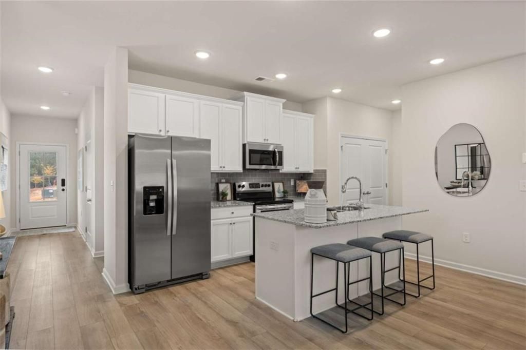 Luxury Townhomes in Villa Rica! Discover Rivershire Place and the popular Edmund plan, where modern design meets everyday convenience. This beautifully crafted home features an open-concept layout with high ceilings and smart home technology. The gourmet kitchen boasts 42 white cabinets, granite countertops, tile backsplash, stainless steel appliances, a large island, and a spacious pantry. The oversized owner's suite includes a walk-in closet and a spa-inspired bath with an oversized shower and separate garden tub. Additional highlights include 2 faux wood blinds throughout. Ideally located just minutes from I-20 and Downtown Villa Rica, enjoy nearby dining, shopping, Sweetwater Creek State Park, and Arbor Place Mall. Home is complete Exterior shown is actual home; interior photos are of the decorated model with the same floor plan. Quick Move-In