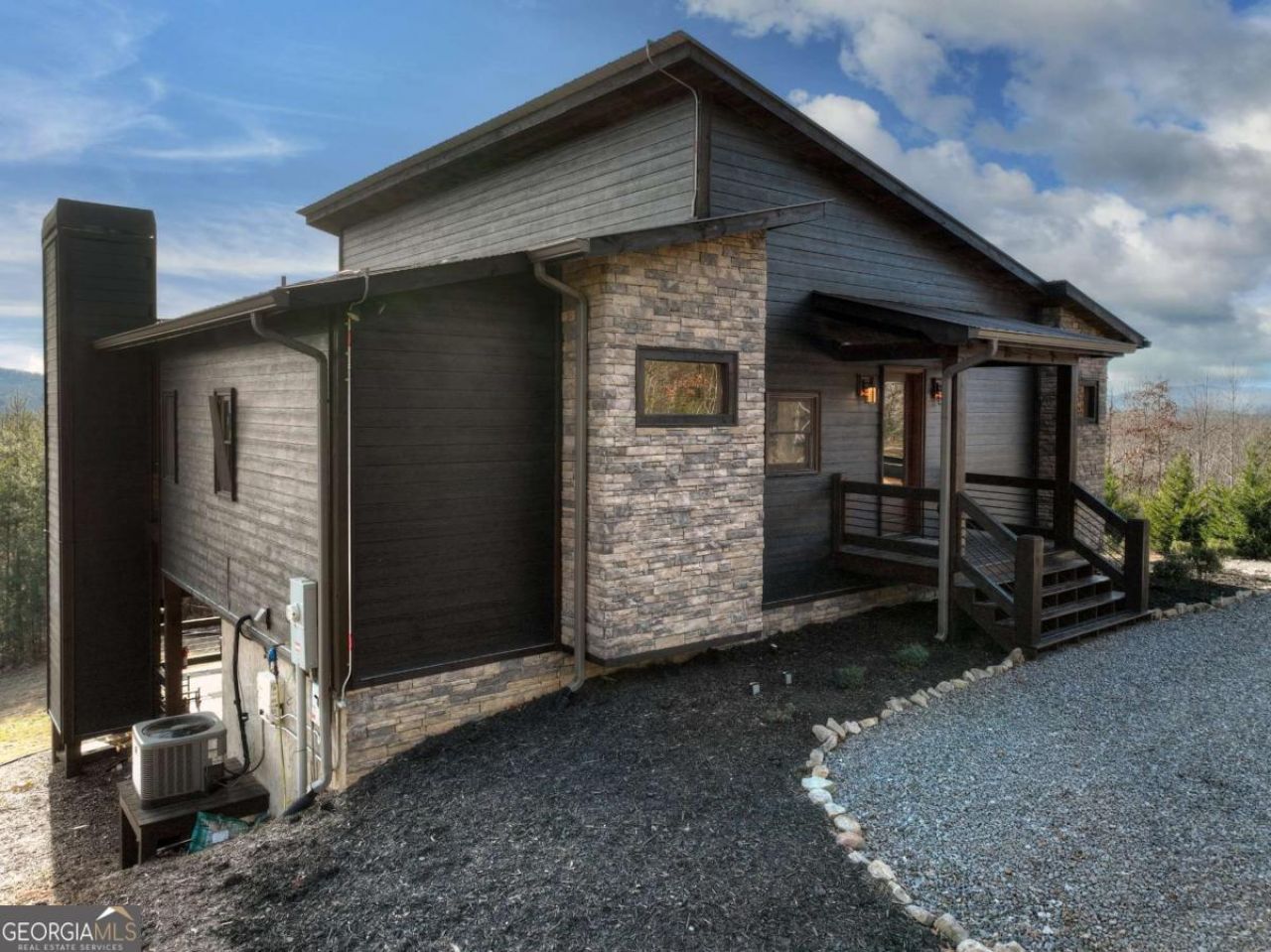 Welcome to modern mountain luxury in the heart of the Blue Ridge Mountains! Built in 2020 and located in beautiful Blue Ridge, GA, this stunning 3BR/3BA contemporary cabin offers breathtaking long-range mountain views and upscale finishes throughout. Each spacious bedroom features a private en-suite bath, creating the perfect layout for full-time living, a second home, or a high-performing rental. Designed with both style and durability in mind, the home showcases low-maintenance materials and quality craftsmanship, blending sleek modern design with warm mountain charm. The main level features an inviting deck with a cozy outdoor fireplace - the perfect spot to take in the mountain views year-round. Downstairs, the expansive party deck off the lower level is built for entertaining, complete with a hot tub, swing bed, and plenty of space to gather and unwind. With three fireplaces total, including one on each deck, this home was designed for exceptional indoor-outdoor living. The terrace level also includes a wet bar and additional recreation space, while outside you'll find a firepit area and playground, ideal for hosting family and guests of all ages. A solar panel system on the roof adds energy efficiency and helps reduce utility costs. Turn-key and thoughtfully designed, this modern mountain retreat offers unforgettable views and luxury amenities just minutes from downtown Blue Ridge.