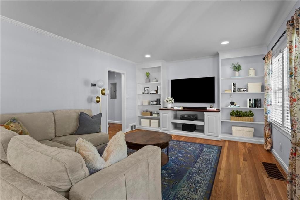 Tucked along a tree-lined street in Lindridge-Martin Manor, this charming three bedroom, three bathroom home has been carefully reimagined for both everyday living and effortless entertaining. The heart of this home is the kitchen - featuring a full-scale structural reconfiguration in 2019 that enhances flow, functionality, and connection to the main living spaces, creating an environment that feels both elevated and inviting. Custom built-in bookcases anchor the family room, adding warmth and architectural interest, as well as fresh interior paint throughout.On the main level, the primary suite offers a serene retreat, highlighted by a beautifully updated bathroom completed in 2025. Two additional bedrooms and a full bathroom complete the main floor. Before you enter downstairs, there is a perfect landing for a flex space or home office. The basement offers flexibility as an additional bedroom with a full bathroom and laundry. Be sure to explore the generous storage available in the unfinished portion of the basement, conveniently accessed through the door at the base of the stairs.Major upgrades, including a newer roof, updated water main with PEX piping, HVAC replacement, new hot water heater components, and a new exterior electrical panel will provide peace of mind for years to come. Additional enhancements such as updated windows and smart home features, including Ring security cameras and a smart lock, further elevate the home's functionality.The outdoor spaces have been equally maintained, with the deck and fence freshly pressure washed and painted, offering a polished extension of the living space for entertaining or quiet evenings at home.Notably, this property stands apart from others in the area: it is not located in a flood plain and does not back to a main road or Interstate.Zoned for the highly sought-after Garden Hills Elementary, Sutton Middle, and North Atlanta High School district, the home also benefits from a location that is both central and serene. Lindridge-Martin Manor is known for its tree-lined streets, strong sense of community, and unmatched convenience to Midtown, Buckhead, and major highways.