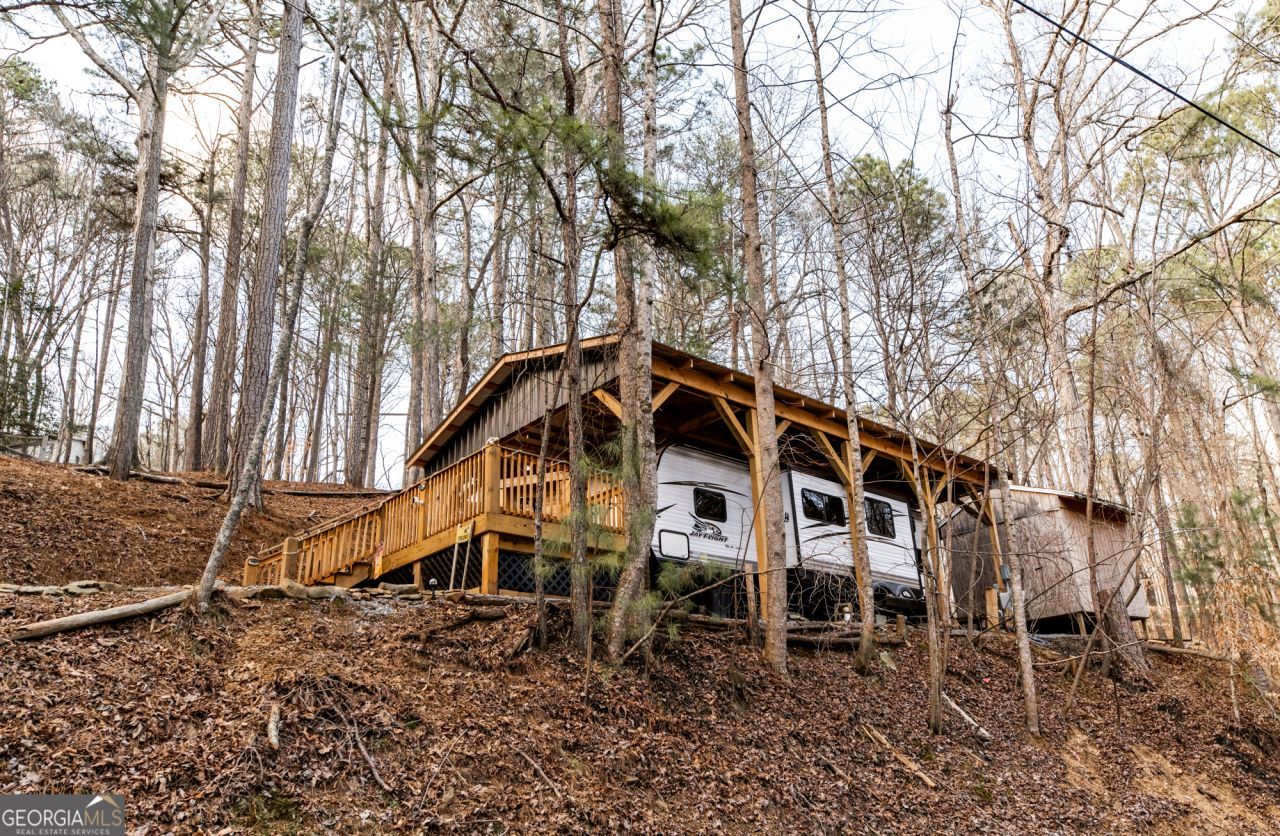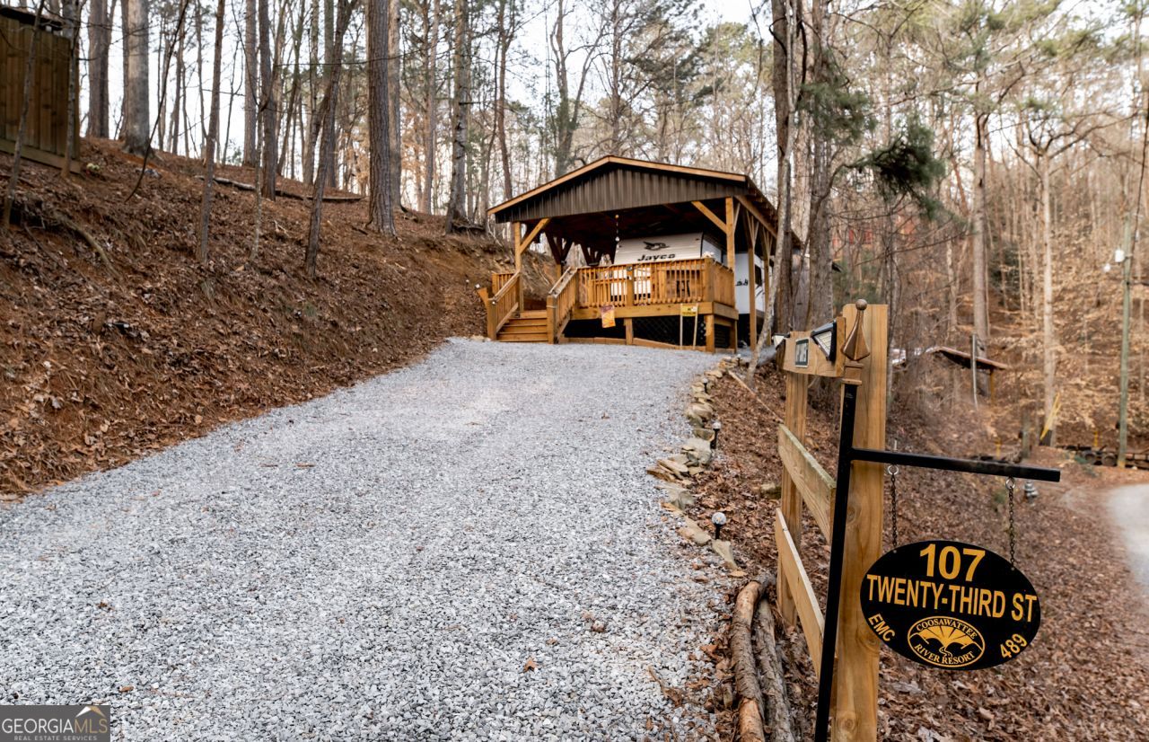 Discover 107 23rd Street, a desirable RV lot located in the highly sought-after gated Coosawattee River Resort in Ellijay, GA. This peaceful lot offers the perfect setting for full-time living, a mountain getaway, or a comfortable base for seasonal stays. Enjoy access to the resort's recreation center, which features an indoor Olympic-size pool, a full gym, arcade, basketball court, tennis/pickleball courts, and putt-putt golf, along with multiple outdoor pools, river access points, and community parks throughout the resort. This particular lot has been significantly improved with features that truly set it apart, including a fully covered deck surrounding the camper (2018 Jayco Jay Flight), retaining walls, and an expanded usable lot area with a fire pit. The entire lot has been refreshed with new gravel for level, low-maintenance ground, and upgrades include a 100-amp electrical service panel, heated, insulated water-line wraps, and a storage building on-site for tools, gear, or seasonal items. Perfect for full-time living, a weekend retreat, or seasonal use, this RV-friendly lot delivers flexibility and comfort in one of Ellijay's most popular mountain communities. Just minutes from downtown Ellijay, shopping, dining, wineries, and hiking, this property blends relaxation, recreation, and convenience in a prime North Georgia setting.