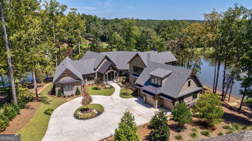 Indulge in the epitome of luxury with this newly constructed 6-bedroom, 6.5-bath pool, thoughtfully developed and designed by Oconee Development at Reynolds Lake Oconee. Completion August, 2025. This exceptional residence boasts a generous 6,298 SF of heated living space and total area of 9,165 SF. Positioned at the point of Angel Pond, it presents unparalleled views and provides both relaxation and entertainment. The exquisite features include rare main-level pool access, allowing you to step directly from your living space into a tranquil outdoor oasis complete with an expansive pool/hot tub area, fireplace, and TV. The main level is a testament to contemporary design, featuring beamed ceilings that rise above a central fireplace, creating an inviting atmosphere. Oversized sliders allow for seamless transition from indoors to outdoors, inviting natural light and the beauty of your surroundings into your home. The gourmet chef's kitchen is equipped with double island, 48 inch sink, top-of-the-line Viking appliances with two dishwashers, catering to both the culinary enthusiast and the entertainer with sleek countertops, icemaker, and wine cooler. Luxurious bedroom suites on the main level offer privacy and comfort, featuring his/hers curbless showers, freestanding tub, and heated floors for the ultimate spa experience. Discover the comfort of the 2nd floor, featuring three spacious bedrooms and three well-appointed baths, ensuring privacy and convenience. An additional living area, complete with cozy fireplace and wet bar, creates the perfect space for intimate gatherings. A private bonus room with separate bath offers a versatile space that can serve as guest suite, home office, or entertainment area. Convenient laundry facilities are located on both the main and secondary floors, adding to the thoughtful design of this home. Experience the pinnacle of Reynolds Lake Oconee living with this rare gem that offers the tranquility of lakeside living. Ideally located near the Creek Club, Lake Club, Ritz Carlton, and other premium amenities. This extraordinary home is just steps away from the most desirable walking trails along the shores of Lake Oconee, providing an exquisite living experience. A golf membership is offered providing access to world-class amenities such as seven championship golf courses, marinas, tennis and pickleball courts, fitness centers, and fine dining. The seller, a licensed Realtor with the Georgia Board of Realtors and Owner/Agent. Come back and visit often 1080 Angel Pond W for updated progress shots.