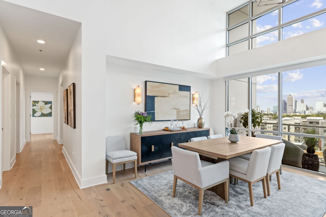 Discover unparalleled luxury in the heart of West Midtown with this one of kind penthouse condo, meticulously crafted by The Patterson Design Group. Occupying the 9th floor of White Provision Residences, Unit 910 offers stunning skyline views from 250 sq ft of balcony space, custom finishes throughout, and some of Atlanta's most popular amenities at your doorstep. Upon entering you'll be greeted by expansive views of Atlanta's skyline from 15 ft floor to ceiling windows spanning the length of the open-concept living area & dining room. The fully redesigned kitchen features custom white oak cabinetry, seamless marble slab countertop & backsplash, Monogram luxury appliances, custom vent hood with the only kitchen exhaust venting outside in the building, a 53 bottle wine and beverage refrigerator, wi-fi enabled appliances and a 36 inch gas range with brass accents. The 4x10 pantry features matching custom cabinets, marble slab and under-shelf lighting. A stunning 725 sq ft primary suite features its own 15 ft floor to ceiling windows and private 25 ft wide balcony showcasing the same jaw dropping skyline views from the comfort of your bed. The en suite bath includes all Carrara marble floors and shower, custom 10 ft wide vanity with center tower cabinet & waterfall marble top, Brizo luxury faucets, large marble shower with bench and a separate custom makeup vanity with marble top and specialized makeup lights. The custom 11x14 closet room features fixed and adjustable shelving, long and short hanging bars, custom shoe storage wall, large closet peninsula with marble top and 17 soft close drawers. An secondary suite at the opposite end of the unit features two large closets with Elfa closet systems and en suite bathroom with marble floors and countertops. The large 3rd bedroom can easily accommodate a king-size bed and a third full bath features a glass enclosed Kohler bathtub and marble countertops & flooring. White Provision Residences is located in the heart of the Westside Provisions District - one of Atlanta's most walkable and amenity dense neighborhoods. Some of the cities hottest restaurants, such as Marcel, Forza Storico & Bar Blanc are just steps away, along with a diverse array of high end retail outlets. The building itself offers 24 hour concierge, modern gym facilities, newly redone pool, and secure, private parking for the 3 deeded spaces that come with the unit along with an EV charger. A custom, fully renovated penthouse of this size cannot be found at this price point anywhere else in the city & the quality of the local amenities is unmatched even among Atlanta's most vaunted neighborhoods, such as Midtown or Buckhead. Do not miss this one of a kind opportunity to enjoy the best of what Atlanta has to offer!