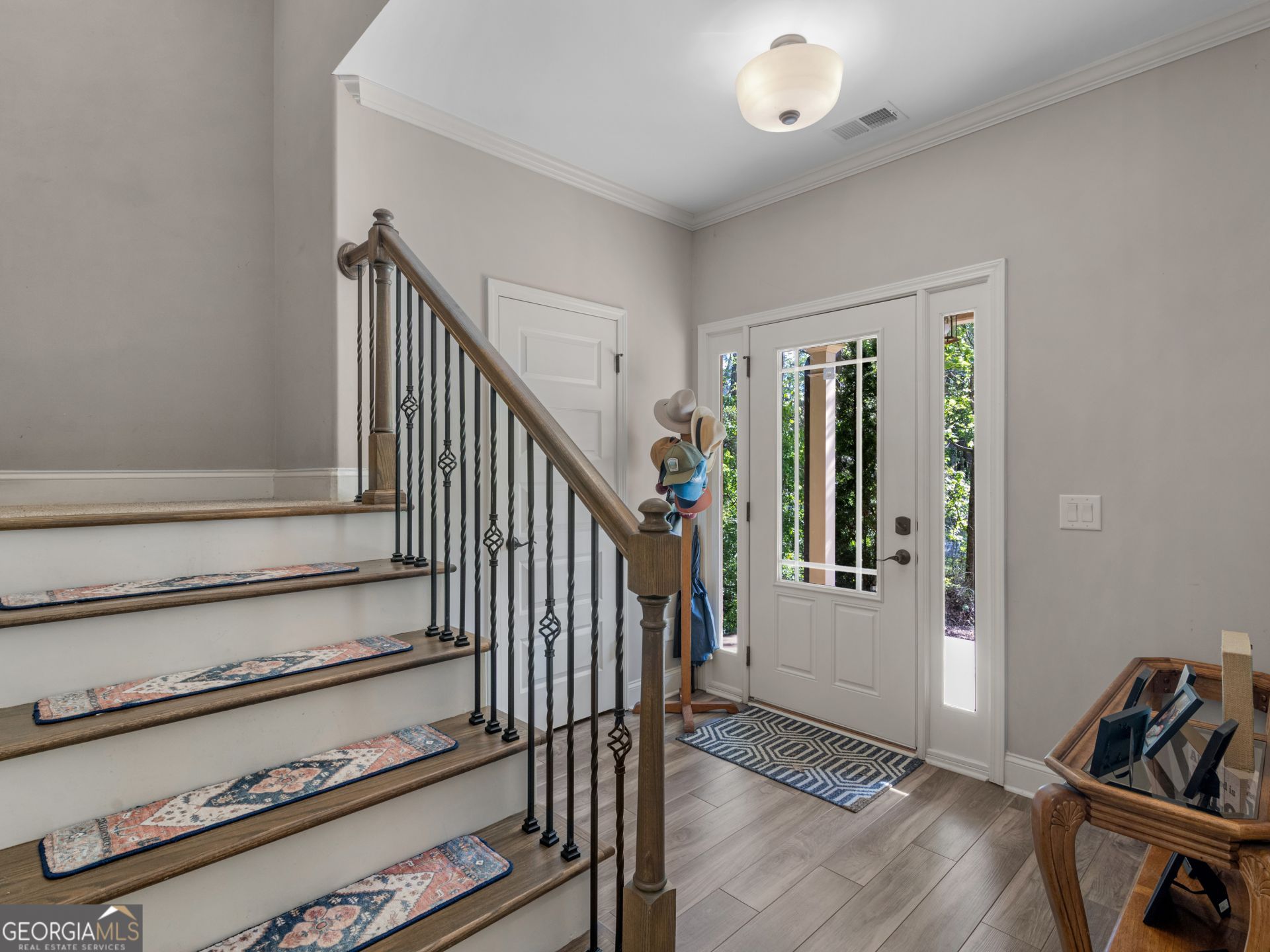 Experience the exceptional lifestyle of Lake Dow North with this immaculate, newer built home! Featuring a unique and impressive floor plan, this property offers 4 bedrooms plus an oversized bonus room on the third level that can easily be transformed into a 5th bedroom, media room, playroom, or whatever suits your needs! Situated on a spacious golf course lot with a tree buffer for added privacy, this all-brick home boasts more space than meets the eye. The moment you enter through the welcoming foyer entrance, you're greeted by an open & airy floor plan that radiates modern living! The spacious family room with a brick fireplace flows seamlessly into a chef's kitchen-a vision of modern sophistication-featuring a contrasting island with seating, sleek granite countertops, a subway tile backsplash, a pantry, new appliances (including a conduction cooktop), and a sunlit breakfast area! Additionally, there is a stunning formal dining room with coffered ceiling and board and batten detail. The main level also includes a thoughtfully designed guest bedroom with a built-in Murphy bed wall system and shelving that will remain with the home, as well as a full bathroom for added convenience. Venture upstairs and you'll discover an owner's suite fit for royalty! This grand bedroom is oversized with a spacious sitting area, an extraordinary walk-in closet that promises to be among the largest you've ever seen, and an en-suite bath with tiled flooring, a granite dual-sink vanity, a deep soaking tub, and a large tiled shower with a corner bench. Every corner of this home is loaded with upgrades, character, and detail! LVP flooring throughout the main level, intricate trim work featuring bullnose corners, charming 5-panel doors, upscale light fixtures and ceiling fans and more! Enjoy outdoor living in style with a covered front porch and an oversized covered patio, complete with a paver extension for extra entertainment space. The black aluminum-fenced backyard offers a serene view of Lake Dow's Georgia National Golf Course. Conveniently located just minutes from the sought after Ola Schools, shopping, dining (including Lake Dow's Pilgreen's Steakhouse!), and the historic McDonough Square and growing downtown district! This home offers more than just impeccable living space, it offers a lifestyle. Ask how you can receive up to $1500 credit by using one of our preferred lenders. Exclusions may apply.**Sellers are MOTIVATED and offering $10,000 in concessions with an acceptable offer**