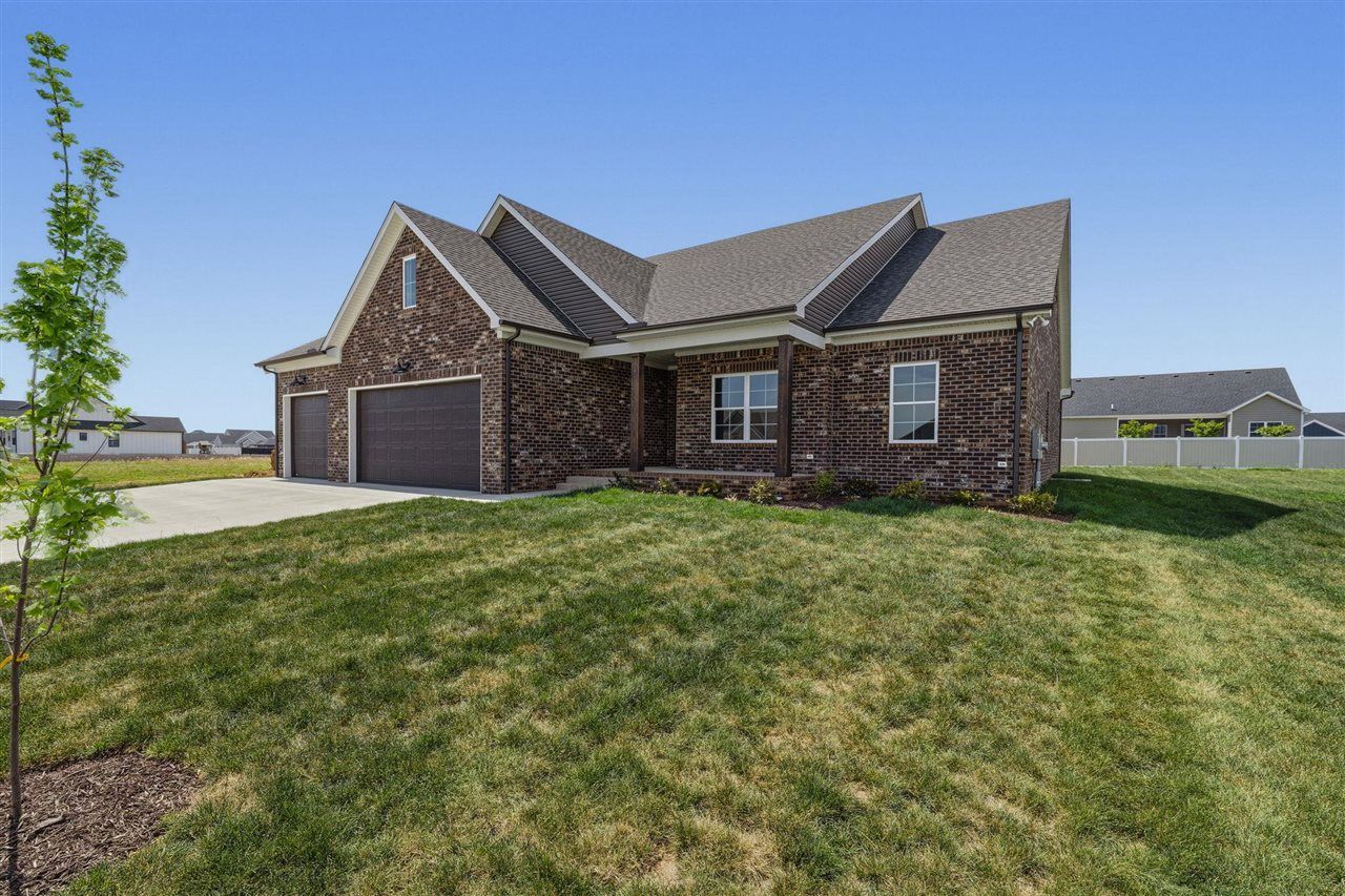 10 YEAR EXTENDED WARRANTY OFFERED! Welcome to this beautifully built 4 bedroom, 2 bath all-brick home located in the highly desirable Williamsburg subdivision. Designed with both style and functionality in mind, this home features engineered hardwood flooring throughout the center of the home and primary bedroom, cozy carpet in the guest bedrooms, and tile in all wet areas. The spacious great room boasts vaulted ceilings and flows seamlessly into the kitchen, complete with an impressive 8-foot island, quartz countertops, and a large walk-in pantry???perfect for entertaining and everyday living. A convenient drop zone just off the 3-car garage adds extra organization. The primary suite is a true retreat, offering a luxurious tile shower, soaking tub, and walk-in closet. Enjoy outdoor living year round with covered front and back porches. This home combines timeless craftsmanship with modern comfort - let's make this your HAPPY place!