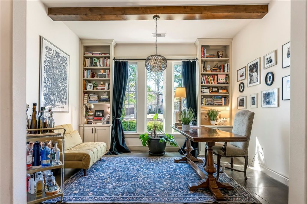 Located on a premier corner lot in the sought-after Chapel Hill subdivision, this custom-designed four-bedroom, four-bath home showcases timeless architecture and elevated living. Crafted with intention, the home features two fireplaces, stained concrete floors, and light-filled living spaces throughout. The main level offers a serene primary suite, a guest suite with ensuite bath, and a cozy study with custom built-ins and oversized 7-foot windows. A beautifully appointed kitchen with custom island and dining area opens to a spacious living room ideal for entertaining. Upstairs are two additional bedrooms with a Jack-and-Jill bath and a large bonus room with custom built-ins and a full bath. Outdoor living includes a covered back porch with porch swing, custom shades, ceiling fans, and a built-in grill and smoker, plus a flagstone path to a fire pit. A three-car garage with storage completes the home, ideally located near Crystal Bridges, the Walmart Home Office, bike trails, and downtown Bentonville.