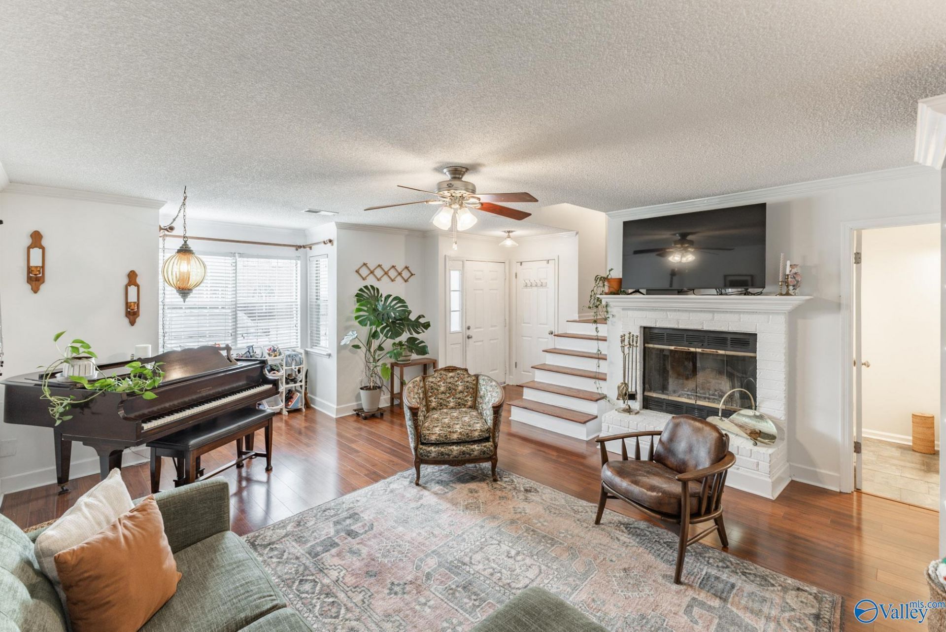 The Perfect Place to Call Home! This quaint condo has it all, an excellent So. Huntsville location convenient to Redstone & shopping, zero -0- carpet, spacious rooms for your favorite things! Well-appointed w/new lighting fixtures, new flooring downstairs w/upgraded baseboards, new dishwasher, freshly painted 2023. (HOA installing new roofs April & upgrades on exteriors coming.) Great Room features easy care laminate flooring, cozy fireplace, ceiling fan & window niche. Kitchen has plenty of prep space & storage, pantry, large dining area. Gorgeous wood staircase leading to two ensuite bedrooms that accommodates large furniture easily, walk-in closets. Private patio, plus outdoor storage!