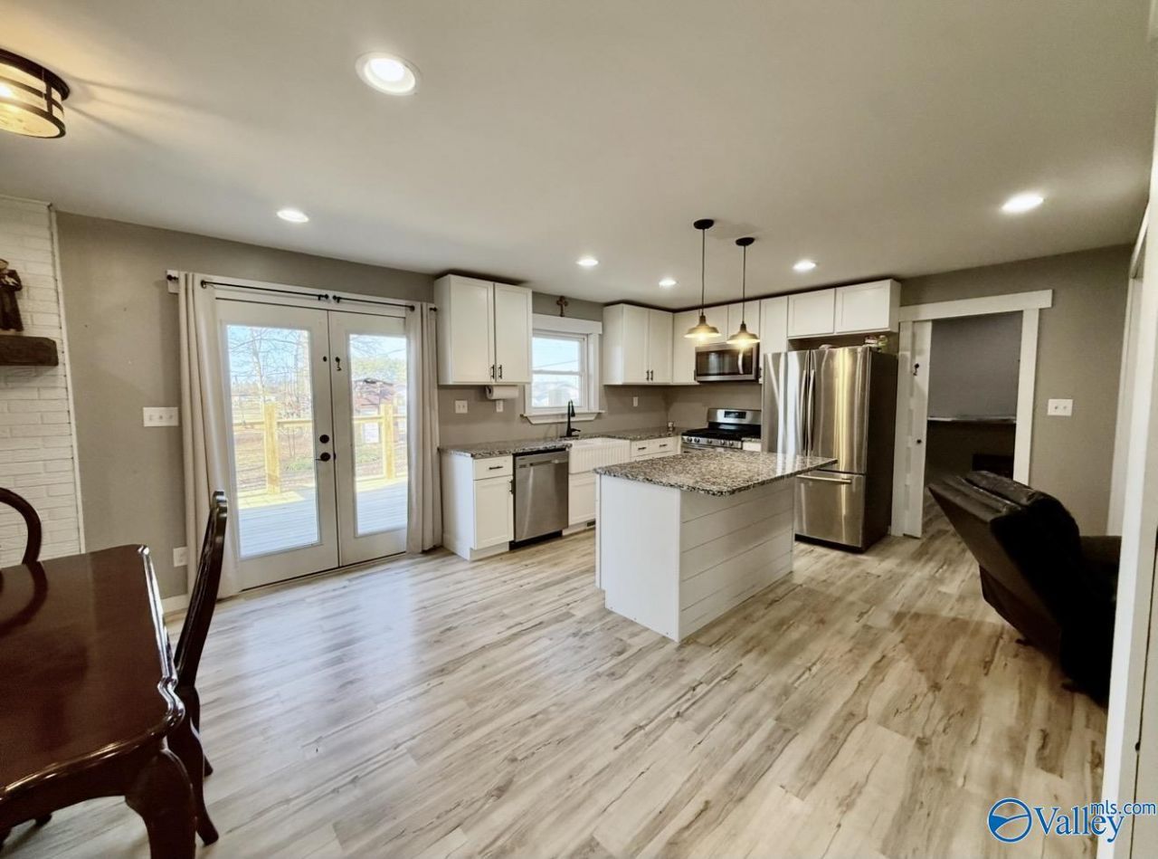Discover a prime location with this beautifully renovated brick ranch home, featuring an open concept design, 3BR 2BA, and a 2-car garage. The spacious living room includes built-ins and entertainment area, enhanced by shiplap accents. Enjoy the low-maintenance laminate flooring and recessed lighting throughout. The kitchen boasts stainless appliances, soft-close cabinets w/ a farmhouse sink, an island with granite countertops, and dining area with a fireplace. The renovated baths are outfitted with stylish tile work and a granite vanity. The master offers on-suite bath w/ a soaker tub and tile shower. A fenced level double lot w/ building and deck. Walk to park, pool or tennis courts.