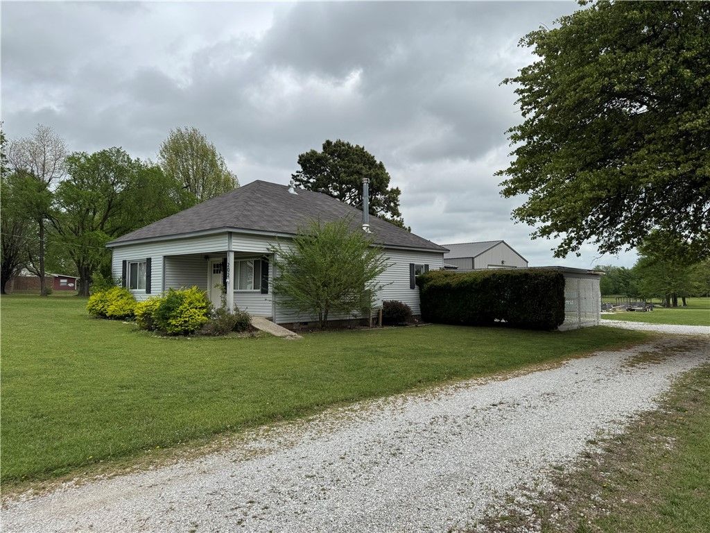 Country setting, yet close to everything in Farmington and Prairie Grove. Older house but move-in-ready on approximately 1 Acre. New PEX water lines in 2025. Wood burning stove in the living room with rock surround. Cute retro kitchen with appliances that convey. Fully insulated 900 SF metal shop building with electric split unit for heating and cooling, with access to water and natural gas. Level lot with room to stretch.