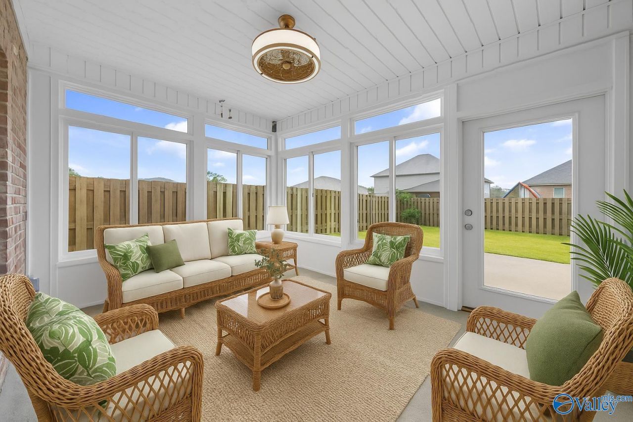 Stunning like-new home with 4 bedrooms and 3 full baths. The entry welcomes you with board and batten details and crown molding, leading to a spacious living room with a trey ceiling. Enjoy the bright sunroom that brings the outdoors in year-round. All bedrooms feature plush carpet and large closets. The primary suite offers a spa-like bath with separate tub and shower plus a walk-in closet with built-ins that connects to the laundry. 5 minute drive to Gate 7 on the Redstone Arsenal, a 2-car garage, and cul-de-sac location close to shopping, dining, and schools make this home a standout!