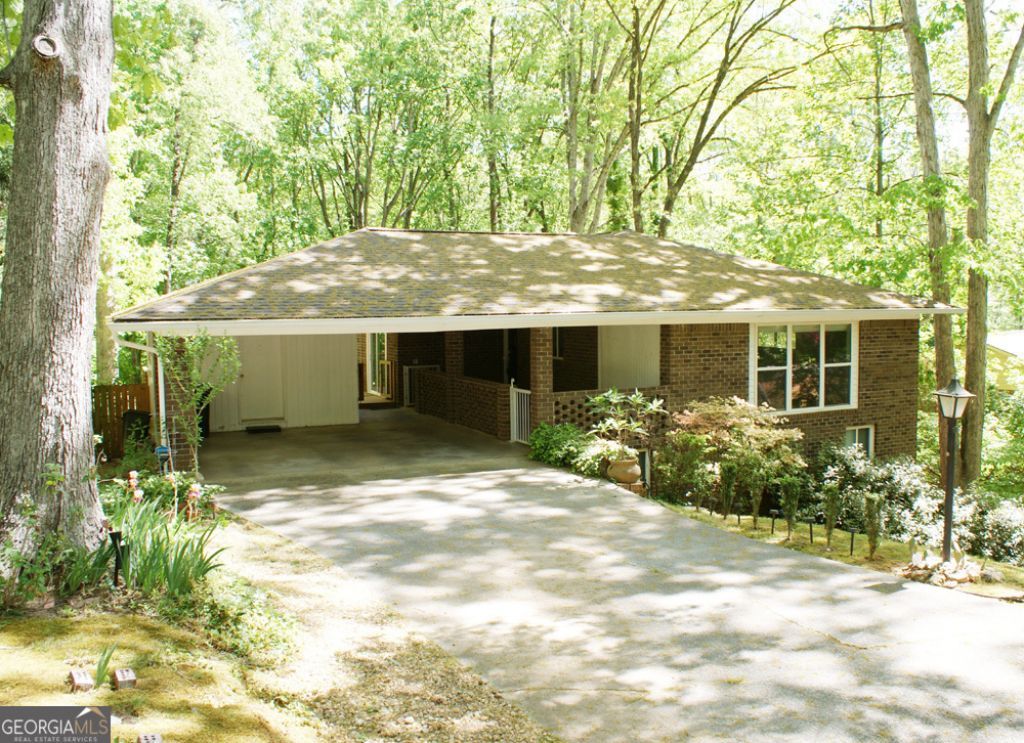 Don't miss the charm of this renovated, 4-sided brick ranch located in sought after Lakeshore Heights right near the heart of Gainesville! You need to see it to believe all this unique home has to offer! Handicap accessible to both the main entrance and the side deck, and it backs up to Corp property, so no neighbors behind you ever! This ranch is perfect for multi-generational living or roommates due to 2 private side entries from both deck levels. Totally updated on the main level in 2018 with 2 new bathrooms, new kitchen, flooring, lighting, fixtures, and new windows throughout. This home is filled with character inside and out with an open floor plan. Walls of windows allowing nature and natural light to enhance the rooms! The current owner has improved it even more with new roof, gutters, hot water heater, and a sliding door to the newer deck to name just a few improvements! A list of the improvements is available upon request. All stainless appliances, washer/dryer, and freezer are included too. The fireplace is a beautiful focal point in the living room with a wall of windows overlooking nature. The fireplace is not in use, but there are options to open it back up should someone wish to use it for more than a decorative focal point. Gas logs are included. Beautiful brick covered patio at entrance from carport, plus a nice studio/workshop/storage area under the 2-car carport with huge window overlooking back deck and nature. Private backyard that abuts Corp property, so you can walk to the lake for fishing or kayaking. Partially finished basement with 2 BR & 1 shower bathroom plus a huge laundry room with washer/dryer/freezer included. Lots of storage, large bonus/exercise room (equipment included), long storm/safe room, and even a gated pet area for those cold winter nights. Outside there is a like-new multi-level deck overlooking the private backyard. Lush landscaping, landscape lighting and drip lines throughout some of the flower beds. You have got to see this to believe all the gorgeous flowers that are popping up each week this spring! Very convenient to shopping, downtown Gainesville, community parks for lake, walking, tennis, playgrounds and other activities. Easy to show, so call today to preview!