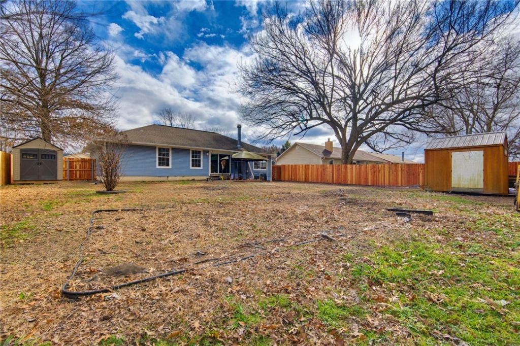 This 3 Bedroom 2 Bath home sits on a large lot off of Wedington. New water heater and HVAC in 2021. New vinyl floors in 2025, as well as guest bathroom remodel, updated primary bath and kitchen countertops, too. New cedar fence in December 2025 - 3 year workmanship warranty. Roof was installed in 2015. New vinyl siding in 2023. The home has a large lot(0.26 acres), with room for kids and pets to play in the fenced yard. It is close to bus routes(0.5 mile), as well as the greenway, and very close to I49, UofA, and major shopping and restaurants. Many flower bulbs in the front yard that will bloom in the spring and summer. Two outbuildings 10x10 wood from Holden Buildings in 2020 and a plastic 7x7 on treated wood foundation in 2023 for plenty of outdoor storage. There is a hardwired Annke camera system with four cameras that will stay with the property. Take advantage of this convenient location and a preferred lender credit available up to $2800 for qualified buyers.
