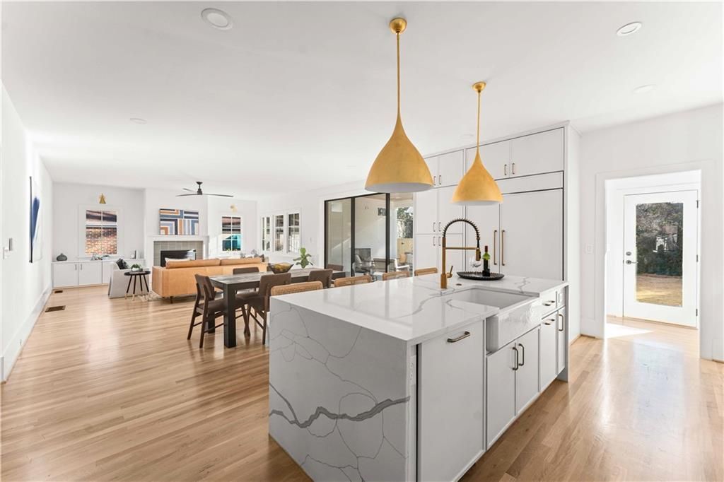 Tucked along one of Morningside's most historic and sought-after streets, this extraordinary custom-built home masterfully blends classic craftsmanship with modern elegance. From the moment you enter, the attention to detail defines this home?every space intentionally designed for both beauty and function. A hand-made iron front door leads you into the foyer, with views of custom-cut herringbone hardwood floors in the dining room and arched doorways, a nod to the refined sophistication of craftsman architecture. The gourmet kitchen is a chef's dream, featuring a high-end Wolf range, paneled appliances, and a spacious island that anchors the open-concept living area, framed by a beautiful fireplace, setting the stage for quiet nights at home and entertaining family and friends alike. Large disappearing sliding doors seamlessly merge the indoors & outdoors, leading out to a covered patio and a lush, private backyard?the perfect setting for a future pool or outdoor entertaining. The primary suite is a true retreat, highlighted by a stunning barrel-rolled ceiling, spa-inspired bath, versatile rain shower, and generous walk-in closet. The primary is flanked by three additional upstairs bedrooms (see if you can find the secret playroom), as well as another on the main floor, two of which have en suite baths. A detached garage with a beautifully finished carriage house provides flexible options for guests, an au pair suite, or a studio. Every detail?from the millwork to the natural light?reflects impeccable design and craftsmanship. Located just moments from Morningside Village, Piedmont Park, and the BeltLine, this home captures the essence of refined intown living.