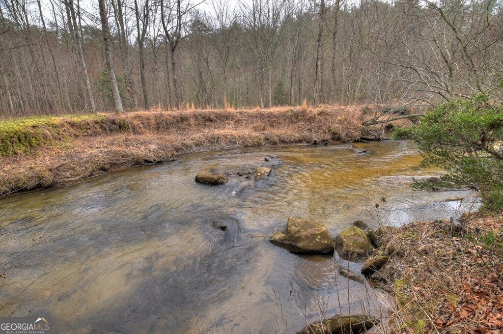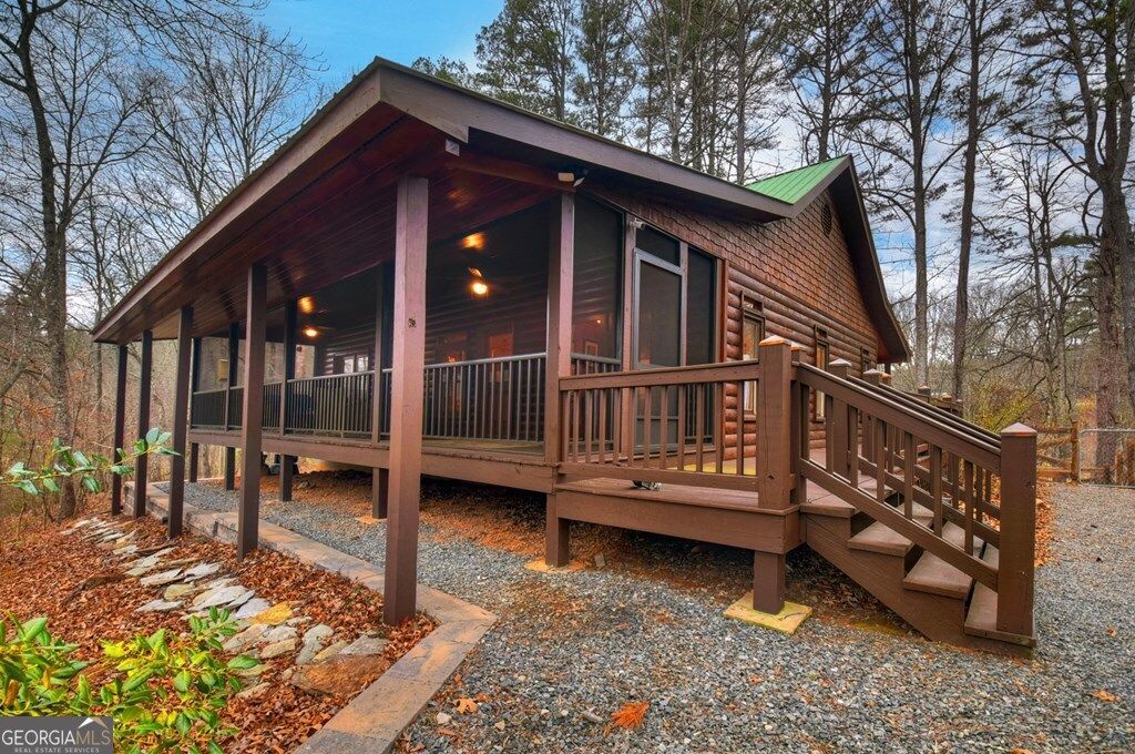 ~LITTLE FIGHTINGTOWN CREEK COMPOUND~ This story book setting is nestled alongside a rushing mountain creek delivering unmatched tranquility on 1.90 beautiful private wooded acres. The main cabin features 2BR's & 2BA's all on one level with detached 2 car oversized garage w/ living quarters above featuring a 1BR, 1BA in-laws-suite/apartment including full kitchen. Garage also features a built-in workshop area w/ cabinetry + attached 1 bay covered carport perfect for your RV/camper, tractor, ATV's, etc. The house features 1120 sq. ft., the garage suite features 672 sq. ft. of living space & 672 sq. ft. of garage space. From the moment you step inside, you'll feel the comforts of this home - mountain living at its best! Exterior construction features modern rustic architecture with log siding & cedar shakes w/ metal roof. Spacious open floor plan featuring double en-suites joined by living & kitchen area featuring custom cabinetry w/ quartz countertops, stainless appliances & stone gas log fireplace in great room. Large screened-in sleeping front porch spans the entire length of the home overlooking this nature-rich private setting listening to the cascading waters w/ approx. 300' of frontage on Little Fightingtown Creek & just over 300' of frontage on Charlotte's Branch w/ Creekside pavilion & fire pit area. Fenced in area on rear side of home is a huge amenity for pet owners. Convenient location within a 15 min. drive to downtown Blue Ridge yet the feeling you're tucked away among hundreds of acres. Enjoy access to nearby USFS land for hiking, mtn. biking, fishing, horseback riding & more.
