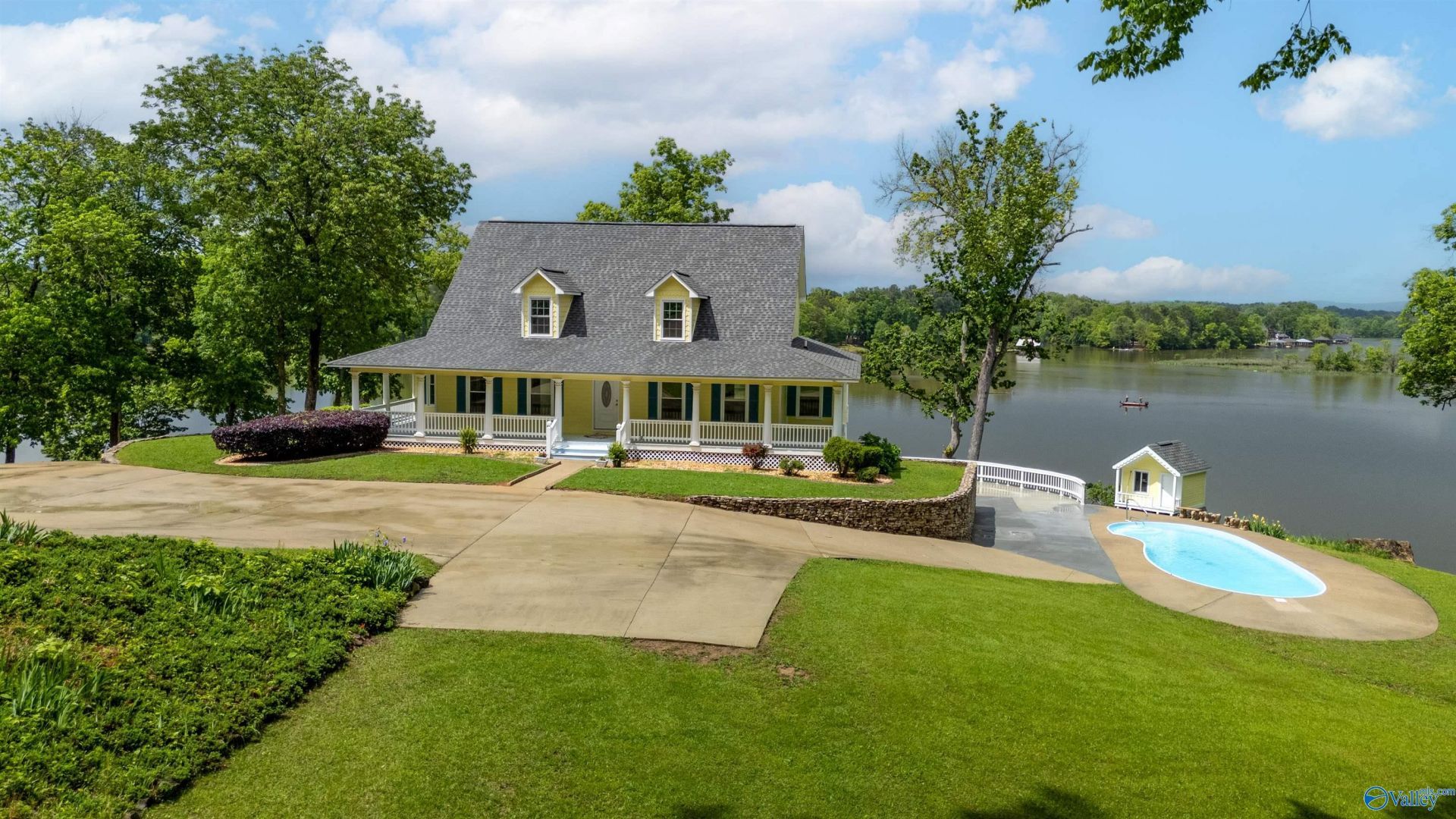Waterfront Estate - Welcome to a rare offering w/412+/- feet of shoreline on the Neely Henry Lake's Main Channel. Custom built 2 story w/full basement & sited on 3.6 +/- ac featuring 4BR/ Greatroom w/Fp, LR, glassed sunroom; Quartz Kitchen w/island, Mst Ste on main level opens to screen porch; Mst BA, Large shower; dbl vanities, WI closet; powder rm & laundry on main; Upstair has 3BR/1BA w/flex rm; Covered front & bk porch; Guest house/Man Cave/MIL Ste facing waterfront; 2BR/2BA, living area w/fp; Kitchenette/Den combo; 50x60 open CH&A garage w/10ft ceilings-could be converted to another home; IG pool & concrete deck overlooking lake; Estate offers privacy & ultimate waterfront lifestyle.