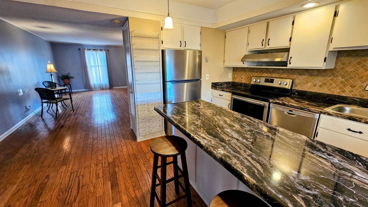 End Unit Townhome in Chatham Village has two bedroom, one and a half baths. Excellent value, this condominium includes refrigerator, private patio for cookouts or relaxing, kitchen w/ breakfast bar opens to a dining room and large living room w/ hardwood floors down, primary bedroom has double closets, carpet upstairs, updated full bath, the laundry closet in the up foyer and there is attic space for storage. Located near St. Francis & I240. No Rentals Allowed.