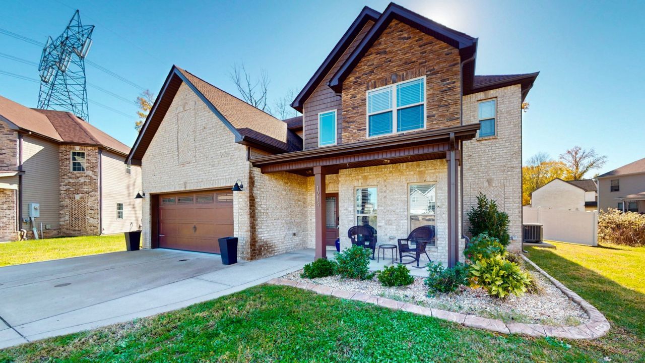 Modern elegance meets everyday comfort in this stunning 6-year-old home, perfectly situated in the heart of Sango on a quiet cul-de-sac. The open-concept layout flows effortlessly from the inviting living room-anchored by a beautiful stone gas fireplace-to the designer kitchen featuring granite countertops, a prep island, stainless steel appliances, and custom white cabinetry. The formal dining room makes a statement with elegant wainscoting and a striking accent ceiling.Upstairs, the owner's suite offers tray ceilings, dual closets, and a luxurious spa-like bath complete with double vanities, a jetted tub, and a tiled shower. Enjoy the fenced backyard that provides both privacy and charm-ideal for relaxing or entertaining. The covered front and back porches extend your living space outdoors, perfect for morning coffee or evening gatherings. Conveniently located close to shopping and dining, yet far enough away to enjoy a peaceful, relaxed setting, this home truly has it all.