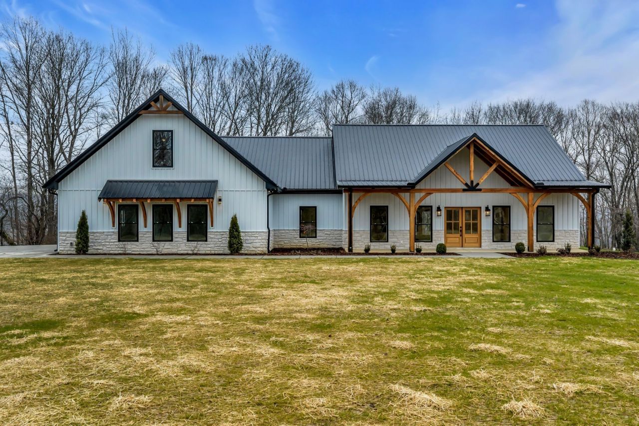 Discover luxury country living in this brand-new custom-built 4 bedroom, 2.5 bath home perfectly positioned on 11 peaceful acres. From the moment you pull up, this stunning modern farmhouse makes an impression with its striking board-and-batten exterior, stone accents, metal roof, and gorgeous timber-framed front porch. Step inside to an open, airy floor plan filled with natural light and premium finishes. The gourmet kitchen is truly the heart of the home-featuring custom cabinetry, an oversized island with rich wood accents, quartz countertops, a pot filler, stainless appliances, and designer lighting. The wide-open layout flows effortlessly into the living and dining spaces, creating an ideal setup for both everyday living and entertaining. The home offers four bedrooms, including a private primary suite, along with 2.5 beautifully finished bathrooms. High ceilings, warm wood flooring, and detailed craftsmanship are featured throughout. Outside, the property provides 11 acres of open space and wooded backdrop-perfect for privacy, recreation, and relaxing. Enjoy peaceful mornings on the covered front porch and plenty of room to create your ideal outdoor living environment. If you've been looking for a new custom home with upscale finishes, land, and room to breathe, this one checks every box.
