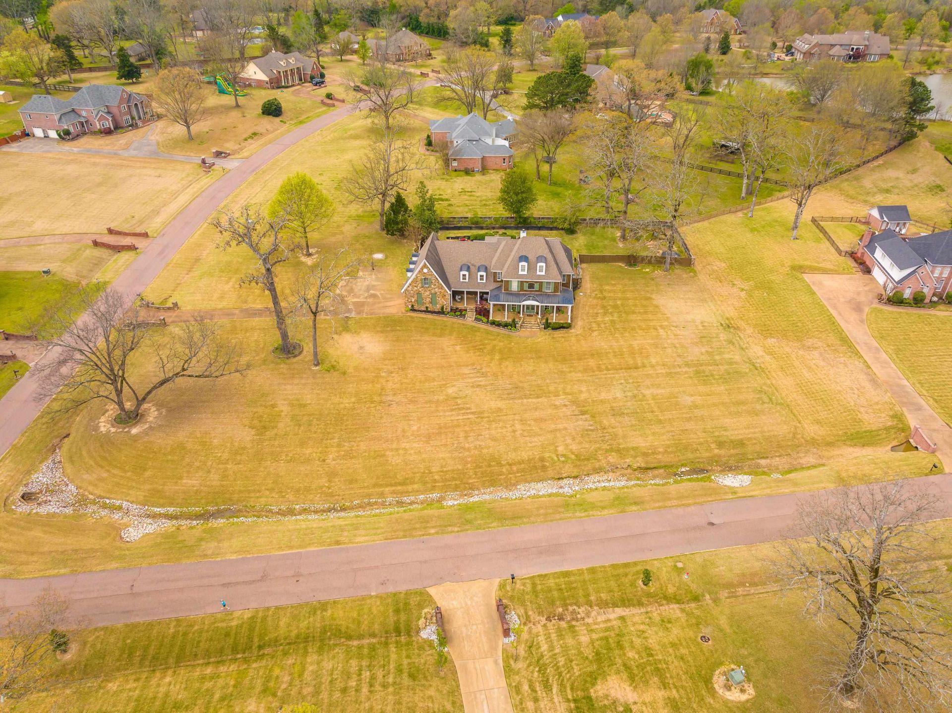Elegant, single owner estate tucked away on a 2 acre lot minutes away from Collierville! County taxes only! This custom-built, well maintained 5 bed & 3. 5 bath home has something for the entire family. The inviting two story entry opens to the living room with stone fireplace and soaring ceilings. So much natural light! Spacious kitchen, separate dining and breakfast rooms, and a hearth room off the kitchen with a stunning view to the backyard! Private main level office with custom shelving and cozy fireplace. Primary bed on main level offers a large en suite bathroom with soaking tub, double vanities, separate shower, walk in closet and a separate office, gym or extra large closet! 4 additional beds & 2 full baths up + bonus room and outdoor balcony! Cool off this summer in your private gunite inground pool or relax under the covered front porch.