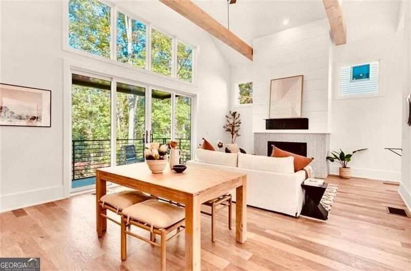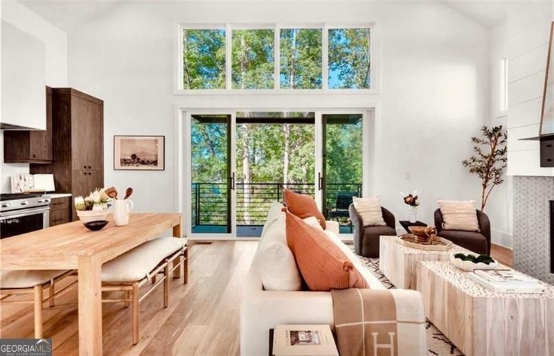 Exceptional New Scandinavian Saltbox Home, with Stunning Views in Serenbe, Sold Fully Furnished with Golf Cart!!! Prepare to be captivated! Located in the prestigious Upper Mado neighborhood of serene Serenbe, this brand-new, meticulously crafted House, seamlessly blends luxury and comfort. With 3 spacious bedrooms and 2.5 beautifully appointed bathrooms, this home boasts an abundance of natural light and an open-concept layout that invites you in. The vaulted ceilings and striking gas fireplace create a warm and welcoming ambiance, making it the perfect setting for both entertaining and cozy evenings at home. The chef's kitchen is a culinary dream, equipped with top-of-the-line appliances and designed for effortless flow into the elegant living and dining areas. Embrace the beauty of indoor-outdoor living from your covered porch, ideal for sipping your morning coffee or indulging in a refreshing sunset cocktail. The expansive primary suite at the rear of the home serves as your private sanctuary, complete with its own patio overlooking tranquil wooded views. Two additional bedrooms share a stylishly tiled bath/shower combo and provide direct access to a delightful upper-level porch, making one of them an ideal office or creative studio. The second-floor laundry room comes equipped with a washer and dryer, while generous closets throughout ensure ample storage space for all your needs. Step outside and discover the vibrant lifestyle Serenbe offers, including miles of nature trails, award-winning restaurants, charming coffee shops, wellness studios, and more, all just moments from your front door. Seize this extraordinary opportunity to embrace life in one of Georgia's most sought-after communities-your dream home awaits!