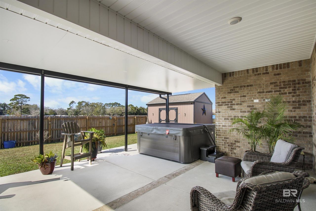 Welcome home to a place where everyday living feels like a retreat. This beautifully crafted new property in Elberta sits on a premium corner lot with peaceful pond views, offering added privacy and a scenic backdrop that enhances the coastal lifestyle.From the moment you step inside, soaring 9 foot ceilings, custom finishes, and thoughtfully designed details create an open, airy, and welcoming atmosphere. Natural light dances across clean lines and custom lighting, highlighting a modern design that feels both elevated and effortless. This smart home features a true split floor plan designed for comfort, functionality, and privacy.The heart of the home is a stylish kitchen with a striking backsplash, perfect for gathering with family and friends. With no carpeting throughout, the home offers a clean, seamless flow that is both beautiful and easy to maintain. An electric fireplace adds warmth and ambiance, creating the perfect setting for cozy evenings and relaxed entertaining.Step outside to your covered back porch and unwind in your private hot tub while overlooking tranquil pond views. Added concrete, palm trees, and thoughtful outdoor upgrades create a setting that feels like a permanent vacation. Practical features such as gutters, a widened driveway, and epoxy garage floors add durability, polish, and everyday convenience.Perfectly located in Elberta, you are just miles from shopping, dining, and the sugar white sandy beaches of Gulf Shores. Whether you are starting your mornings with coffee under the palms or ending your days with sunset breezes by the water, this home offers the lifestyle you have been dreaming of.This is more than a home. It is coastal living, reimagined. Buyer to verify all information during due diligence.