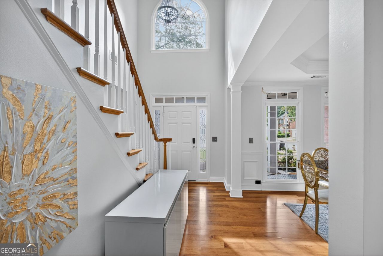 Tucked away on a quiet cul-de-sac with mature landscaping and a fully fenced backyard, delivers the privacy and lifestyle and in a highly-rated Lake Windward Elementary school district - highlighted by a gunite in-ground swimming pool with sun deck that transforms ordinary evenings into a personal retreat. This meticulously maintained 3 sided brick residence with abundance 3,050 square feet family space and 5-bedroom, 3-bathroom. Freshly painted walls and hardwood floors, open with soaring ceilings, abundant natural light throughout the main level. The heart of the home is the sun-drenched, soaring Great Room, anchored by a warm, gas log fireplace. A flexible fifth bedroom or private Executive Office/Library on the main level provides essential modern versatility. Step inside the grand, two-story foyer flanked by elegant formal living and dining rooms, setting the stage for both intimate gatherings and large-scale entertaining. This space flows seamlessly into the gourmet kitchen, which features sleek Stone Countertops, a suite of Stainless Steel appliances, and a bright breakfast nook overlooking the backyard oasis. A fenced, private yard centering on a sparkling In-Ground Gunite Pool is your personal summer destination, perfect for hosting neighborhood barbecues, poolside cocktail parties, or simply unwinding beneath the Georgia sun. With a two-car attached garage framed by lush landscaping and a charming front porch that invites you into a world of sophistication. Located minutes from Avalon and Downtown Alpharetta, this home places dining, shopping, and entertainment within easy reach