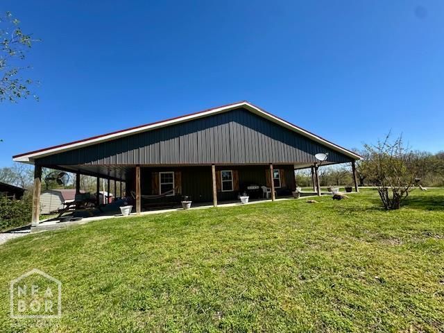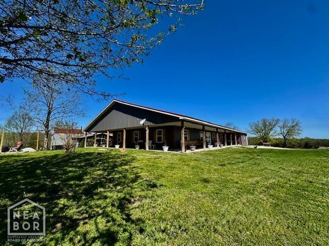 This custom 2020 barndominium sits on a peaceful, sprawling 7.33 acres and blends efficient design with true rural charm. An airy, open-concept layout showcases thoughtful custom touches, while durable metal siding/roof and spray-foam insulation keep maintenance low and utilities smart. Enjoy sunrise coffee or sunset grilling on the wraparound covered porch, and bring all the gearthere's a 2-car attached garage plus a large storage room that leads to a lower-level area that could serve as a storm shelter. The split floor plan offers privacy and function. The spacious primary suite features dual closets, a sliding door to the porch, and a spa-style bath with custom double vanity, rain showerhead, and direct access to the laundry room. Four additional bedrooms plus a flex room (easily a 6th bedroom, gym, office, game/craft room, man cave, or second living area) give you options to grow and gather. Highlights: ~ All-electric home with spray-foam insulation throughout ~ Wraparound covered porch for relaxing & entertaining ~ 2-car attached garage + large storage room; lower-level area suitable as a storm shelter ~ Abundant storage and closets throughout ~ Land & Improvements (Hobby Farmer's Dream) ~ 40' x 60' shop with electricity ~ Several outbuildings (negotiable) ~ Pig pen, chicken coop, horse pastures, and kennels for hunting dogs currently on site ~ Fenced pen previously housing an alpaca, mini pony, and goat (animals not included) Whether you're homesteading, need room for a crew, or simply want space and quiet, this property checks every box. Schedule your private tour today.