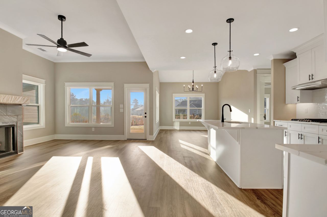 MOVE-IN READY Seavy Ranch Plan. Welcome to Chadwick Homes! Enjoy ranch style living! No need to build, when this beauty is move-in ready with a neutral palette and features you will love. All bedrooms on one level make this such a popular floorplan! Stainless appliances highlight the bright kitchen with prep island, desirable gas cooktop, and wall oven. Gathering room with fireplace as the focal point and open to kitchen. Dining/breakfast room with beautiful views out back. Primary suite offers a bath with tile shower, double vanity and walk in closet with built-in wood shelving. This plan is the only one that features a separate soaking tub in the primary bath. Quartz countertops throughout home. Spray foam attic and tankless water heater make this new construction home efficient, and upgraded with value. Three car garage. Covered back porch with beautiful views of a valley. Lawn maintenance included in HOA, with an optional pool membership. It even has a golf putting green! Enjoy all that downtown Senoia has to offer for shopping, restaurants, coffee shops, breweries, farmers market or strolling, just minutes away! Golf cart paths to Publix shopping center. $5,000 towards closing costs with preferred lender!