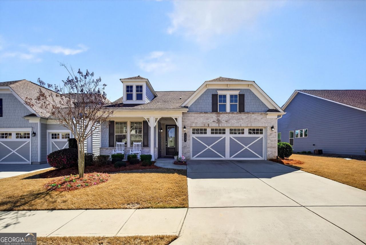Welcome to Cresswind-Peachtree City's premier active adult community! This beautifully-designed Ashford Plan offers a charming covered front porch and an inviting color palette that draws you in from the street. Step through the decorative glass door into a foyer that flows seamlessly into the heart of the home. The bright, airy kitchen features a convenient central island, tasteful white cabinetry with solid-surface countertops, stainless-steel appliances, and an expansive view that overlooks the great room-perfect for entertaining and everyday living. The open living, dining, and gathering area includes an extra 8 feet of space, a cozy fireplace, and abundant natural light from numerous windows (and don't miss the remote controlled blinds!). The convenient owner's suite offers a tray ceiling, generous walk-in closet, double vanities, and large, tiled shower. A well-placed secondary hallway provides easy access to a comfortable secondary bedroom, full bath, and laundry room-creating ideal flexibility for visiting guests, a home office, and daily convenience. Step outside to a covered back porch overlooking a level, fenced backyard. Other home features include a sprinkler system and luxury vinyl plank flooring throughout - yard maintenance is provided as well! Cresswind is an active adult community with top-notch amenities including fitness center, indoor and outdoor swimming pools, and pickleball/tennis courts. Residents enjoy a WIDE array of classes, clubs, and activities!