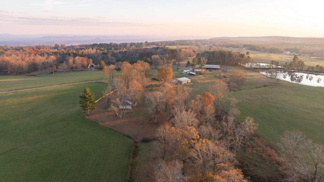 Cloudland Pastures is a picturesque 101± acre working homestead on Lookout Mountain in northwest Georgia. The land unfolds across gently rolling pastureland framed by wooded edges that provide both privacy and natural beauty. Long sightlines stretch toward distant ridgelines creating a sense of openness, while fencing divides the acreage into manageable sections for livestock or rotational grazing. Three ponds, including a 3± acre primary pond and two additional smaller ponds, serve both functional and scenic roles within the landscape.A 2,350± square foot farmhouse with a recently painted exterior and newer roof sits on a hill overlooking the property. The home includes two bedrooms and two baths, along with a living room, office, and mud room. Two wood-burning fireplaces, located in the living room and office, add warmth and character. A large sunroom serves as the primary living space and captures beautiful sunset views in the evenings.The farm infrastructure is well-positioned and thoughtfully laid out. A large barn measuring approximately 120 feet by 125 feet includes both open and enclosed storage along with working pens designed for livestock handling. Additional structures support equipment storage and day-to-day operations, creating a farmstead that is practical and adaptable.With frontage along both Alabama Highway 103 and Golf Course Road, access to the property is convenient and straightforward. With established fencing, multiple ponds, and a functional farmstead already in place, the land is immediately usable for livestock, small-scale agriculture, or recreational enjoyment. This is a property that feels both productive and peaceful, well-suited for owners seeking space, self-sufficiency, and a strong connection to the land.