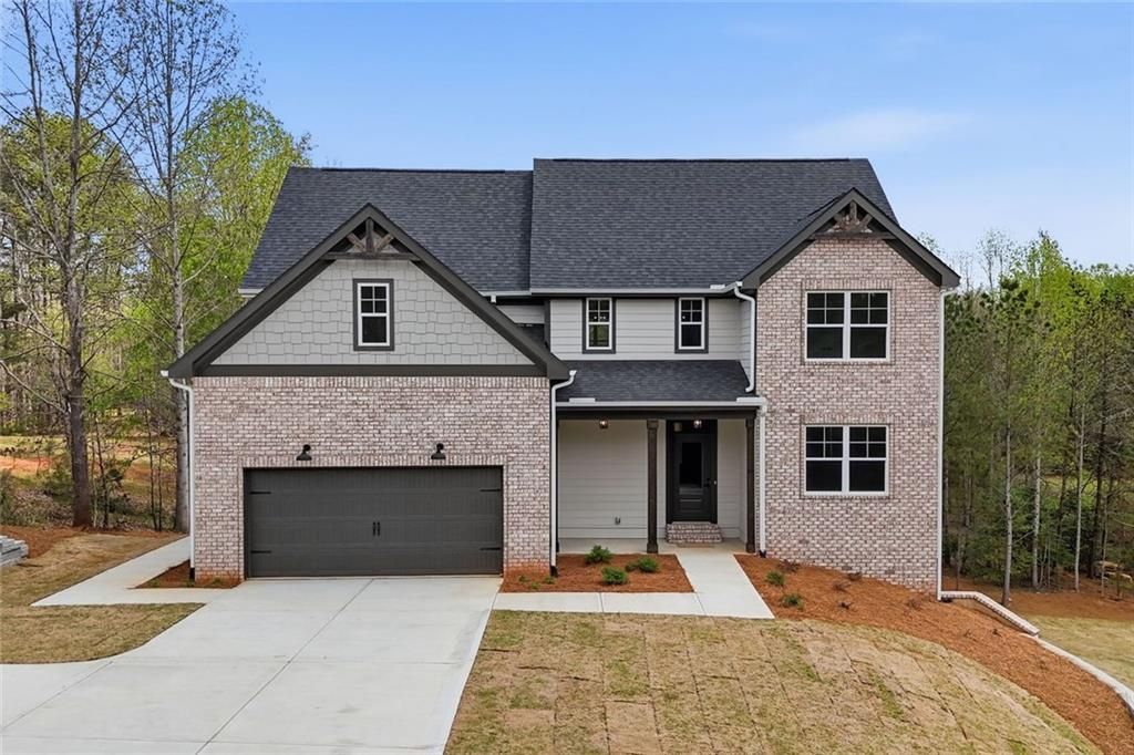 New construction with a two-story deck and covered outdoor living sets the tone, offering a private retreat that extends your living space into the trees, paired with upgraded trim, countertops, appliances, and lighting throughout. The main level opens with a clean, open floor plan anchored by a sun-filled family room featuring exposed beam accents and a 72-inch electric fireplace. The kitchen is both sharp and functional with quartz countertops, a large island, vent hood, subway tile backsplash, and upgraded cabinetry, flowing easily into a separate dining room for hosting. A main-level guest bedroom with an ensuite bath adds flexibility, while the mudroom with built-in bench and hooks keeps daily routines organized. Upstairs, the primary suite creates a true retreat with room to recharge and a spa-style bath that includes a freestanding soaking tub, tiled walk-in shower, dual vanities, and a large walk-in closet. Two additional bedrooms share a full bath, while the loft offers space for a home office or second living area. Laundry is conveniently located on the upper level. The walk-out basement provides room to expand with direct backyard access, ideal for future living or recreation space. Outside, the covered deck and lower patio create layered outdoor living that works for both quiet mornings and entertaining. Fresh sod, underground gutter drainage, and a parking pad add function to the low-maintenance yard. Move-in ready with thoughtful upgrades throughout. Castleberry Ridge amenities include a clubhouse, pool and tennis courts. Conveniently located with easy access to GA-400 and a short drive to Atlanta, this home offers the ideal combination of privacy and accessibility. Close to local wineries, hiking trails, and everything that makes North Georgia living so special.