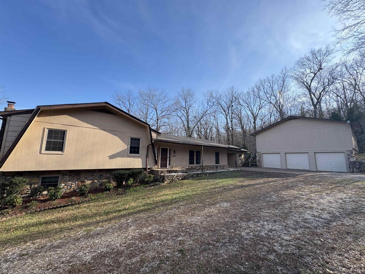 Cradled in your own private corner of the Ozark hills & spread across 13.62 surveyed acres, this Rainbow Lake home welcomes you like an old friend-quiet, peaceful, & full of country charm. Deer wander the ridge at sunrise, turkeys cross the clearing, & the world feels still yet downtown Hardy & the Spring River are less than five minutes away. Walk into the foyer with the rock floor flowing into the fireplace to set the tone, warm wood floors, vaulted living room ceiling. Custom kitchen, cabinets stretching along walls like they were built for a lifetime of family meals, porcelain tile floors & breakfast bar feels like the place where stories are shared. Step onto the screened-in porch and breathe in the peace only country living can give. Upstairs holds 2 bedrooms & 2 baths plus a spacious primary suite with a large walk-in closet. Downstairs gives you another bedroom, a bonus room for a possible 4th, a full bath, laundry, & even a laundry chute from above. Outside sits a detached 3-car garage with a huge upstairs space ready for an apartment, game room, or whatever you can dream up. With a 2022 architectural roof, city water & sewer, and a mix of cleared land & private woods!