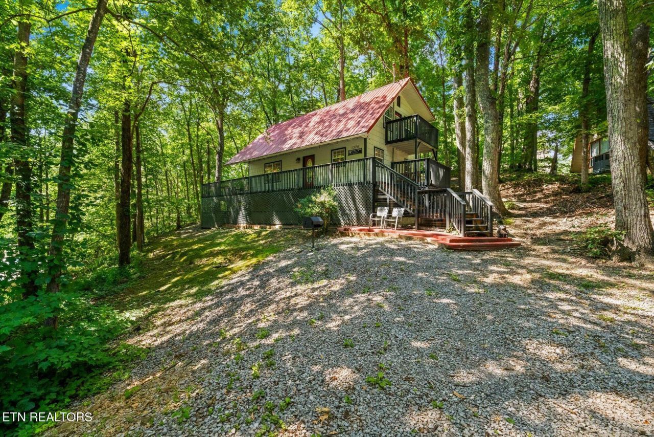 Welcome to 1378 S Baden Dr in Gatlinburg, TN, located in the charming Chalet Village. This fully renovated and fully furnished chalet boasts 3bedrooms and 2 full baths across 1,400 sq ft of living space. Just 3 miles from downtown Gatlinburg, it offers easy access to the Great Smoky Mountain National Park, Ober Mountain for winter skiing, Dollywood, Pigeon Forge & more. Ideal for year-round enjoyment, this property is already an income-producing rental with rental reports available for prospective buyers. Nestled on a hillside, the chalet is surrounded by beautiful mature trees providing ample shade to relax on the outdoor deck and patio or while soaking in the hot tub. Inside, the family room features beamed ceilings, a gas fireplace with rustic stone charm, and space for dining or playing a game of pool. The beams continue into the light and bright kitchen, which is equipped with white cabinetry, stainless steel appliances, and a charming backsplash for a touch of character, along with bar-height seating for two. The main level includes a bedroom with a king-sized bed and a full bathroom with the rustic charm of tongue-and-groove wood-paneled walls. The second floor features a cozy loft, perfect for reading a book or watching a show. The two upstairs bedrooms are well-appointed, each offering a private deck. One room has a second king-sized bed, while the other is currently set up with two bunk beds-one full over full and one twin over twin. A second full bathroom with wood paneling completes the upper level. This chalet is perfect for those seeking a serene retreat or a profitable rental investment in one of Tennessee's most sought-after locations.