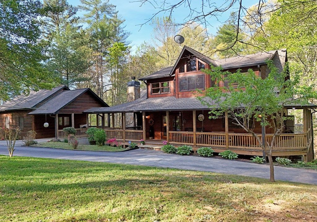 Nestled in the North Georgia mountains, this well-appointed home in Mineral Bluff offers a perfect blend of comfort, functionality, and location?situated less than 4 miles from Downtown Blue Ridge, GA. Enjoy convenient access to shopping, dining, and outdoor activities while still embracing the peace and privacy of mountain living. Featuring 3 bedrooms and 3.5 bathrooms, this home is thoughtfully designed for both everyday living and entertaining. The main level welcomes you with a spacious great room highlighted by soaring ceilings and an indoor fireplace, creating a warm and inviting atmosphere. A loft area provides flexible space ideal for an office, additional sleeping, or a sitting area, while the terrace level den offers additional room for recreation or guests. Outdoor living is a standout feature with a wrap-around porch that allows you to take in the serene surroundings. Relax on the inviting front porch swing or gather around the outdoor fireplace?perfect for enjoying cool mountain evenings year-round. Additional features include a detached workshop ideal for hobbies or storage, a carport for covered parking, and a circular driveway providing easy access and ample guest parking. This property is well-suited for full-time living, a mountain getaway, or an investment opportunity in one of North Georgia's most sought-after areas.