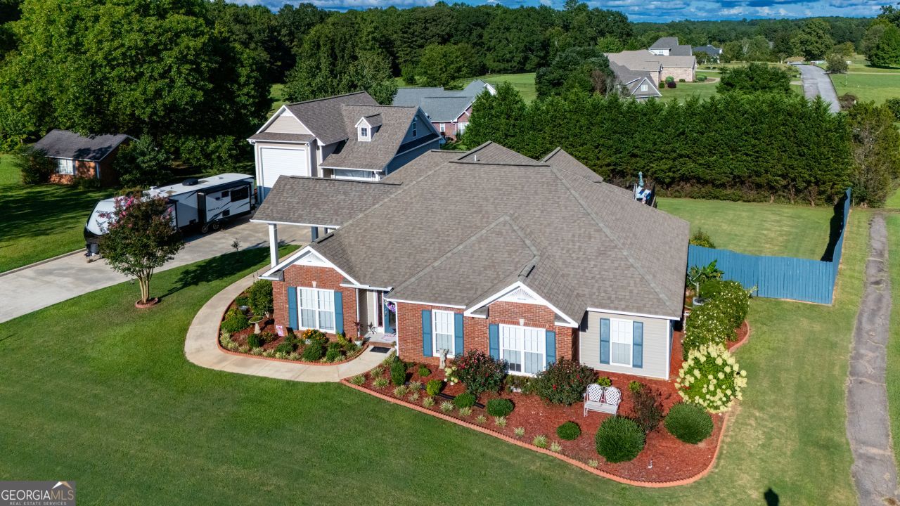 REDUCED!! A lil' Sass & Country CLASS is what you'll find when you step inside this COUNTRY CLUB beauty! One level 4bdrm 3 bath brick-front nestled in the outskirts of Roanoke's countryside. A lovely side porch enters to an inviting kitchen that's says come'on in and sit a spell! It boasts a large island w/Bkfst bar, eat-in dining, custom cabinetry, great room w/fireplace perfect for entertaining family & friends (holidays being just around the corner) and a separate formal dining rm - this home easily accommodates large gatherings...or if you prefer, just cozy up in the den (vaulted ceiling) with a good book & cup of coffee that overlooks the pool. A large master suite w/walk-in his/her closets, dble vanities, walk-in shower & jetted tub. New roof 2025A shaded patio steps onto stamped concrete decking surrounding a beautiful in-ground pool w/diving board, 2025 liner & cleaner, perimeter fencing, tons of room for grilling out and best of all...PRIVACY! Included are walk-in laundry/pantry, roomy two car garage AND a separate HUGE garage with roll up doors, 12 X 14' RV bay, single car bay w/storage area & an upstairs bonus room for office! The landscape speaks for itself ~ how well maintained and cared for...absolutely stunning! Convenient to LaGrange, Auburn, Anniston or Carrollton and Lake Wedowee. All this amongst a 9-hole golf community, clubhouse w/memberships avail....PAR!!! Don't let the SHOWPLACE pass you by!!