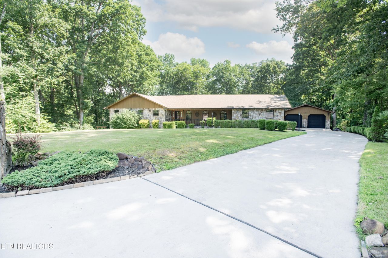Nestled in the serene Lake Hills subdivision just outside of Oak Ridge, Tennessee, 146 Lake Hills Drive offers a harmonious blend of classic charm and modern comfort. Positioned on the generous 1.14 acre lot to optimize privacy, this expansive 5,686 square-foot residence features five bedrooms and four bathrooms. This beautiful one-of-a-kind estate-sized home and lot provides ample space for both relaxation and entertainment. This spawling rancher with finished basement showcases a timeless design with intricate custom stonework and detailed wood exteriors, complemented by territorial views that capture the natural beauty of East Tennessee. Inside, the home boasts custom trim-work throughout the spacious layout with real oak hardwoods, tile and carpet floors which combine to create a warm relaxing and inviting atmosphere. The living areas are also accentuated by a custom stone fireplace offering you cozy retreats during cooler months. The main level generously-sized chef's kitchen is equipped with double wall ovens, refrigerator, dishwasher and a custom island with cook's gas cooktop catering to your family's daily living along with all your weekend entertainment needs. The main level offers true main level living with three en-suite bedrooms with baths, laundry room, living room, den, tongue and groove all-season window-lined sunroom, covered patio and five car garage. The finished basement was architecturally designed for the families enjoyment and large group entertaining alike. Everyone will enjoy the media/home theater, exercise gym, recreation/billiard room with full kitchen bar and a private poker-themed room.Additional features include a super large 4 car detached garage, handyman's workshop and carport to ensure ample parking and storage solutions.The property's location offers a balance of privacy and accessibility, situated within a community known for its tranquility and proximity to local amenities. With its blend of spacious interiors, classic design elements, and potential for personalization, 146 Lake Hills Drive stands as a distinguished offering in the Oak Ridge real estate market.IT IS THE RESPONSIBILITY OF THE BUYER AND/OR BUYER'S AGENT TO VERIFY ANY AND ALL INFORMATION LISTED PRIOR TO PURCHASE.
