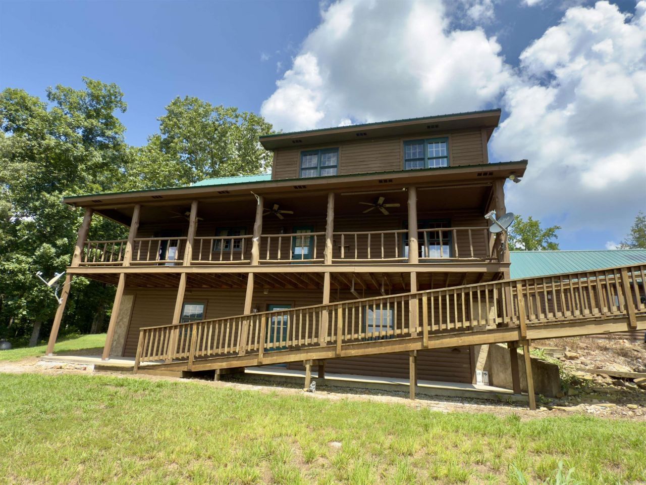 Charming 3BR Log Home on 6.93 Acres with Mountain Views, Walk-Out Basement & Safe Room Enjoy mountain living in this 3BR, 2.5BA log home on 6.93 private acres with paved road frontage and a circle drive. This 3,360 sq ft retreat features a cozy gas log fireplace (1 yr old logs), walk-out basement, and whole-house Generac generator. The kitchen boasts a JennAir propane cooktop, double wall oven, and quiet-cycle dishwasher. Relax on the covered front porch or spacious back deck overlooking an above-ground pool with stunning mountain views. Perfect for homesteaders or hobbyists with a metal barn, fenced animal area, 3-car detached garage, and RV hookup. Inside, enjoy a walk-in tub, walk-in shower, and a dedicated safe room for added peace of mind. A new roof (1 year old) adds to the home's value and comfort. Whether you're seeking a peaceful escape or a mini-homestead, this well-equipped mountain property has it all!