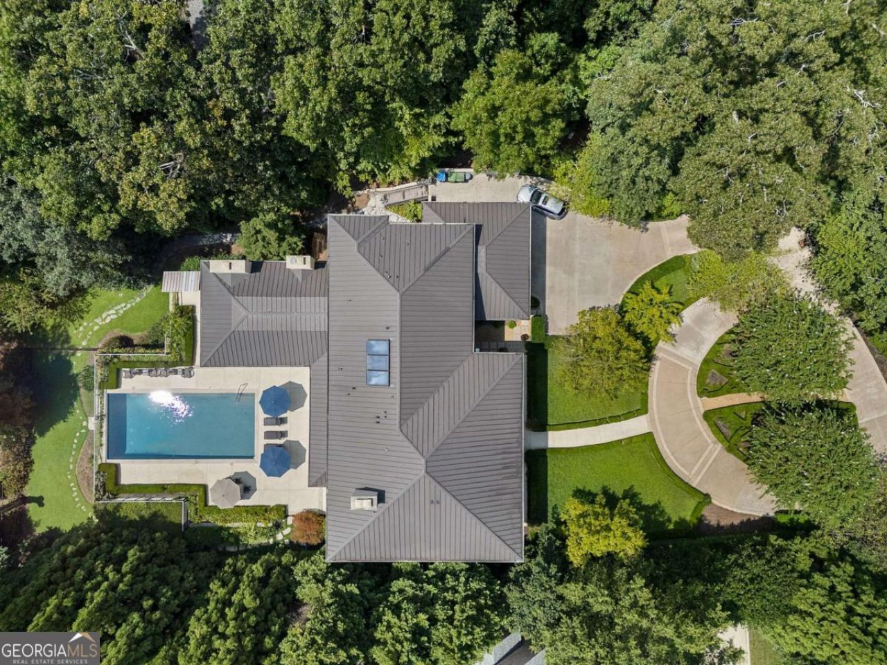 Set on a private one-acre estate lot in Buckhead, zip 30327, this thoughtfully custom designed modern-transitional residence offers a rare sense of privacy, light, and effortless indoor-outdoor living. Masterfully built by AFG Builders with architectural design by Harrison Design, the home reflects timeless craftsmanship and exceptional construction quality throughout. A dramatic two-story foyer opens to expansive living spaces with 12-foot ceilings and a striking wall of glass overlooking the pool and landscaped grounds. Solid wood triple-locking doors, sculptural staircases, and refined finishes speak to the home's elevated level of detail. The main level offers a flexible second primary suite with direct pool access, while the upstairs primary retreat is a private sanctuary featuring a fireplace, study, terrace, and dual oversized dressing rooms. Designed for entertaining and everyday living alike, the kitchen and breakfast room flow seamlessly into the dining and family rooms, screened porch, and outdoor entertaining areas, complete with pool bath and outdoor shower. Elevator to all levels. The daylight terrace level functions as a true entertainment suite with a full kitchen, wine cellar, fireplace, and additional space ideal for a media room, gym, or guest apartment. Eco-conscious construction-including insulated concrete walls, metal roof, solar water heating, and sustainable materials-enhances comfort, efficiency, and longevity. Surrounded by mature trees and estate homes in coveted 30327, this Buckhead property offers serene privacy with effortless access to Atlanta's finest dining, schools, and amenities.