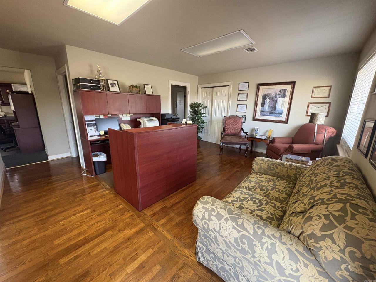 Prime commercial office property located on busy five-lane Airport Road offering excellent exposure with estimated traffic counts of 30,000???40,000 vehicles per day. Previously utilized as a law office, this well-maintained building features three private offices, a conference room, reception area, and rear administrative/storage space. Original wood floors add character throughout much of the property, with one carpeted office and one bathroom for convenience. Four on-site parking spaces provide easy client access. Property includes a prominent roadside monument sign with electronic message banner, allowing dynamic advertising and enhanced visibility to passing traffic ??? a valuable feature for maximizing exposure. Ideal for professional services, medical, insurance, real estate, or other office users seeking strong visibility and functional layout in a high-traffic corridor. Office equipment and furnishings not included but negotiable.