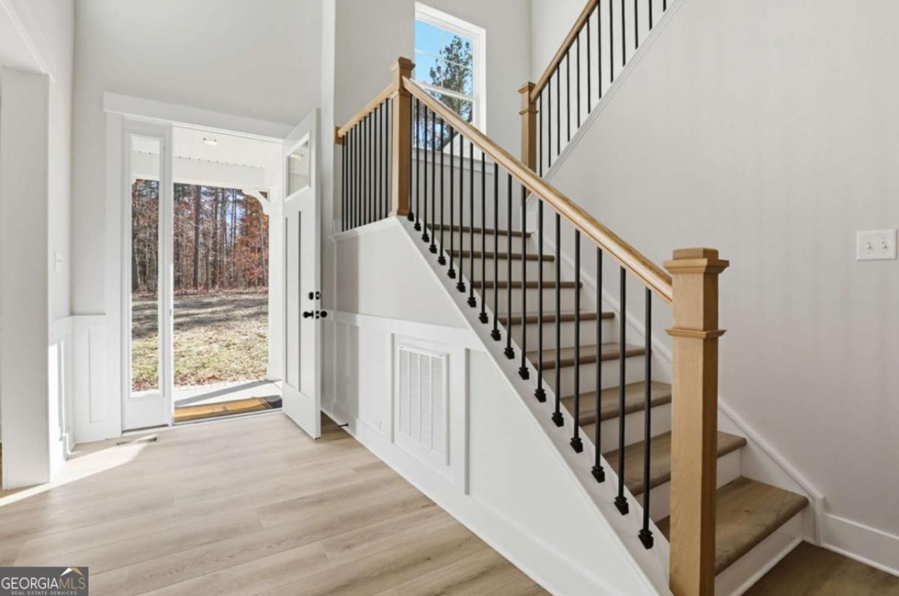 Designed for both everyday living and entertaining, this Waverly offers a guest suite and private office on the main level, a wooded backyard with an expansive patio, and a striking two-story foyer that makes an immediate impression. Tucked into the Arbor West community in Dawsonville, this beautifully designed home blends space, style, and thoughtful functionality from the moment you arrive. A soaring two-story foyer with an open stairwell welcomes you in, leading to an oversized dining space connected to the kitchen through a butler's pantry-perfect for hosting. The main living area is open and inviting, centered around a shiplap fireplace with a cedar mantel. The designer kitchen features warm brown cabinetry complemented by a contrasting white island, creating a timeless and elevated look. Step outside to enjoy the expansive back patio overlooking a wooded backdrop, offering a peaceful and private setting, while the long front driveway adds to the home's presence and convenience. The main level is thoughtfully laid out with a private office tucked away from the living areas-ideal for working from home-along with a separate guest suite for added flexibility. Upstairs, a spacious loft provides additional living space, while the primary suite offers dual closets and a spa-inspired bath complete with a freestanding soaking tub, large shower, and separate vanities. Located just minutes from downtown Dawsonville, Arbor West offers the perfect balance of quiet surroundings and everyday convenience.