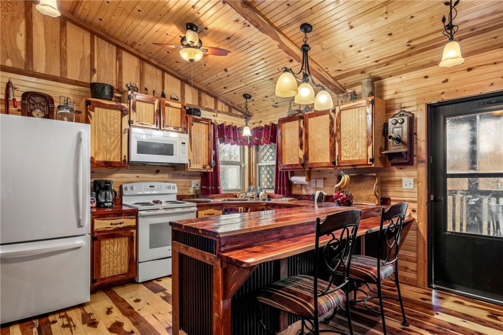 Imagine a 2 Bedroom, 2 Bathroom, Single-Level Retreat with Dedicated Office. Experience elevated Ozark living in this custom-crafted luxury cabin overlooking Inspiration Point and the White River, just minutes from Eureka Springs. Designed with intention and artisan detail, the home features rich cedar flooring, warm wood-clad walls, and stunning cabinetry. The open living space is anchored by a wood-burning fireplace, creating an inviting atmosphere for refined relaxation. The primary suite has been thoughtfully updated with a newly installed, designer tile walk-in shower for a wonderful spa-like experience. Expansive windows capture serene woodland and bluff views, enhancing the home's sense of privacy and connection to nature. Ideal as a luxury getaway or high-end investment property, this one-of-a-kind residence blends craftsmanship, comfort, and breathtaking surroundings.